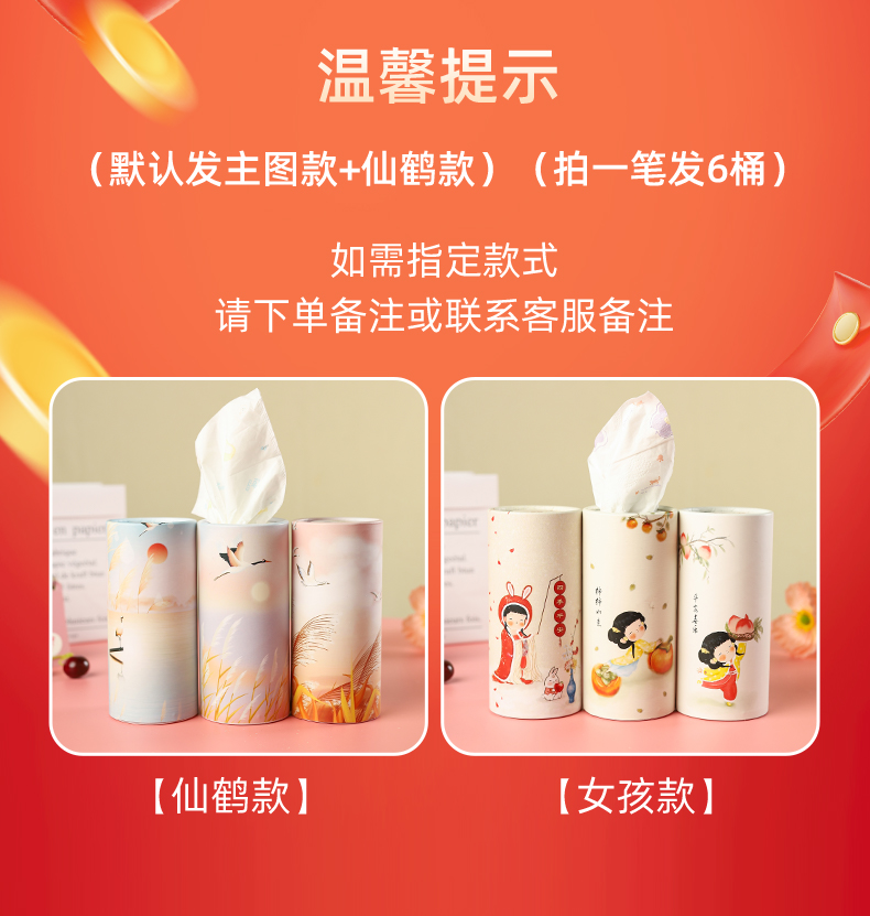 印花車載桶抽紙汽車水杯位卡通抽紙可濕水原生木漿紙桶裝紙巾*6桶