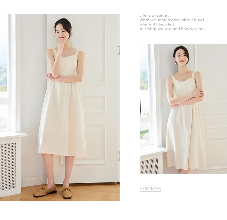 gcrues法式小眾氣質吊帶裙子2023夏季新款中長款顯瘦白色連衣裙女