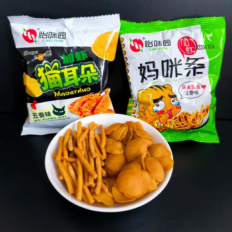 怡味園加蝦貓耳朵媽咪條零食五香味散裝酥脆膨化辦公室休閑小食品