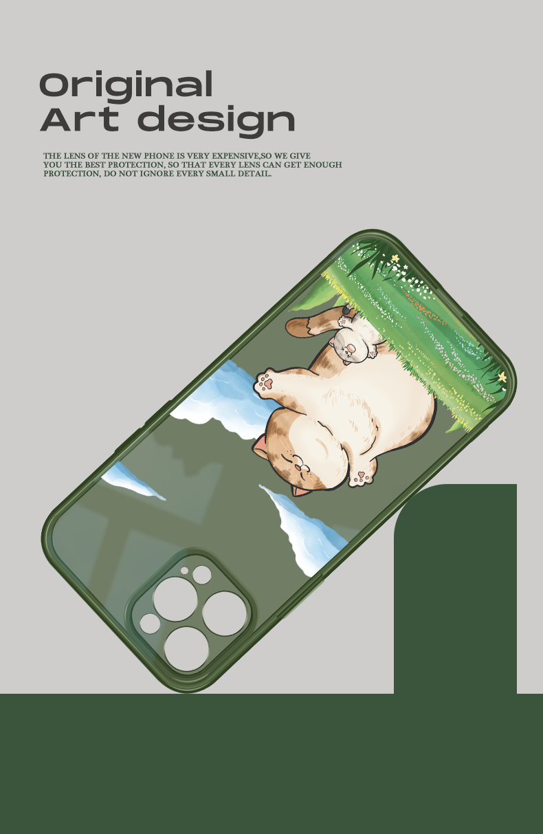 桔子貓適用蘋果14promax玻璃手機殼華為p50榮耀90硬殼小米13創意nova11手機殼oppoReno9手機殼vivoS16保護套