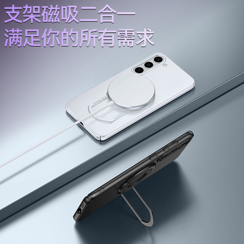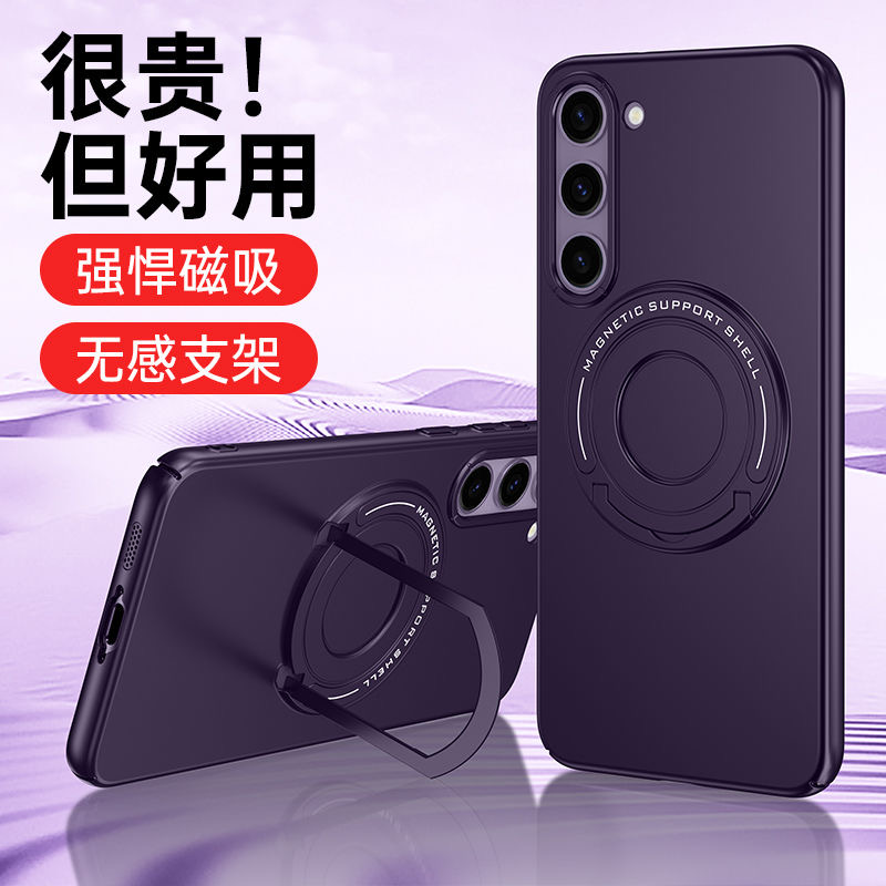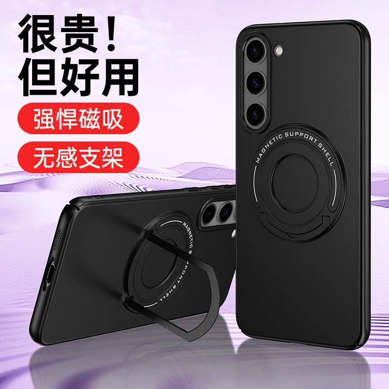 三星s23手機殼創意拉桿磁吸支架適用ultra時尚簡約隱形多功能+磨砂膚感magsafe全包防摔一體指環高級感保護套