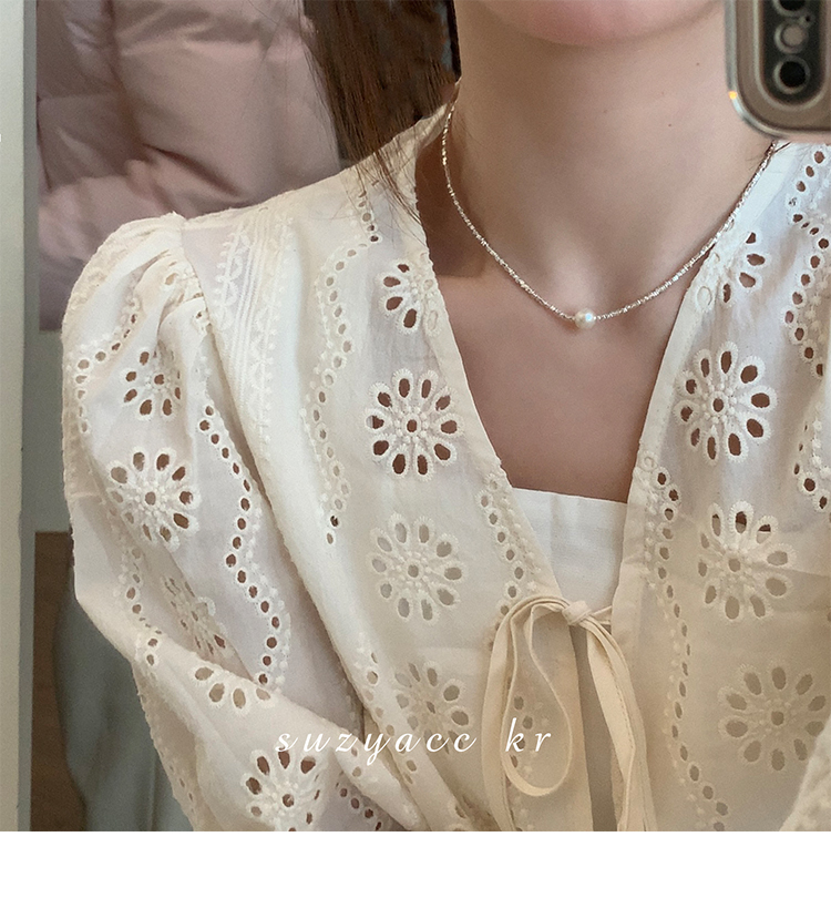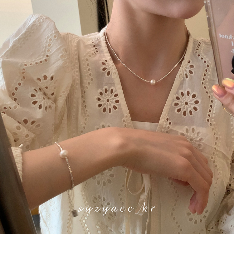 suzyacc kr簡約小眾設計感碎銀子珍珠項鏈2023新款氣質高級鎖骨鏈