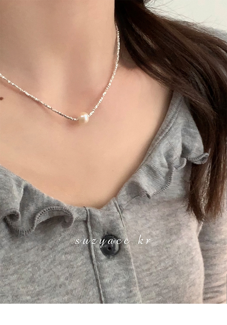 suzyacc kr輕奢小眾碎銀子珍珠頸鏈