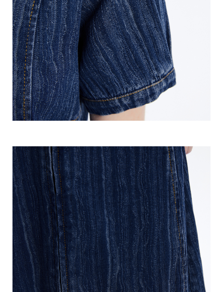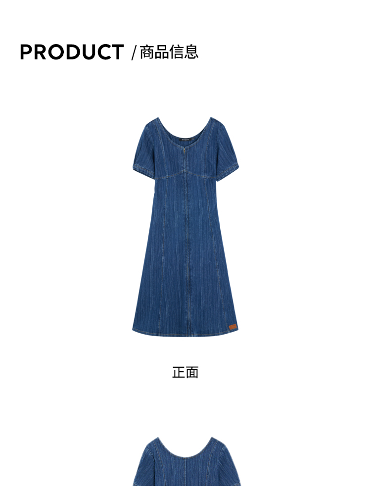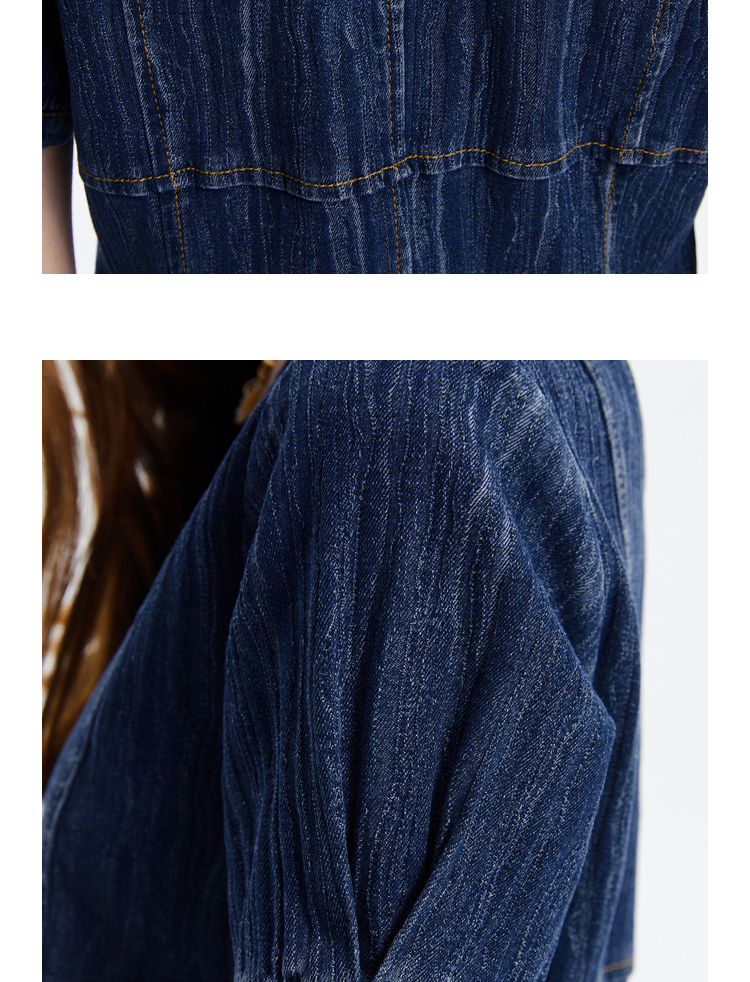 Desigual【西班牙時尚品牌】牛仔A字型拉鏈開襟泡泡袖長款連衣裙