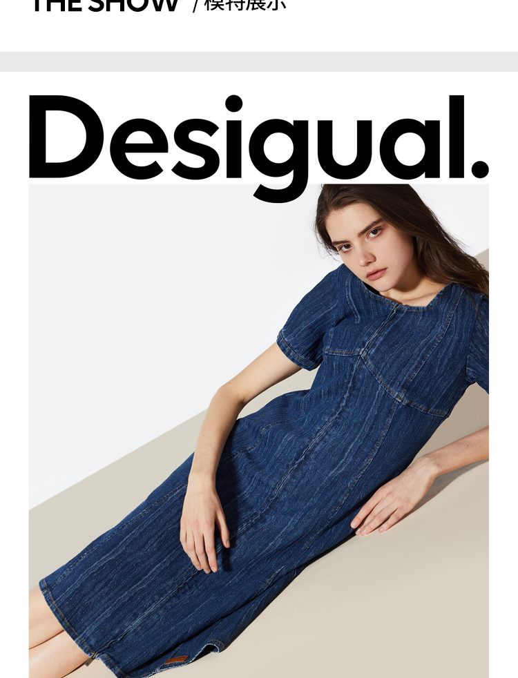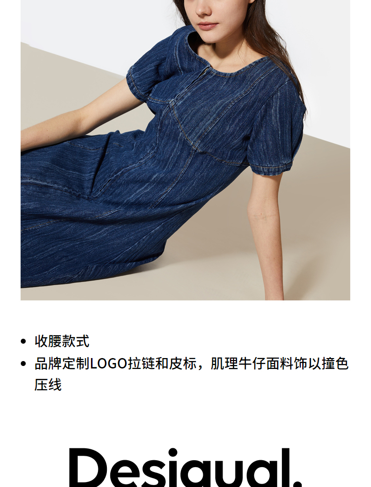 Desigual【西班牙時尚品牌】傘擺不規則裙擺拼接中長款女式連衣裙