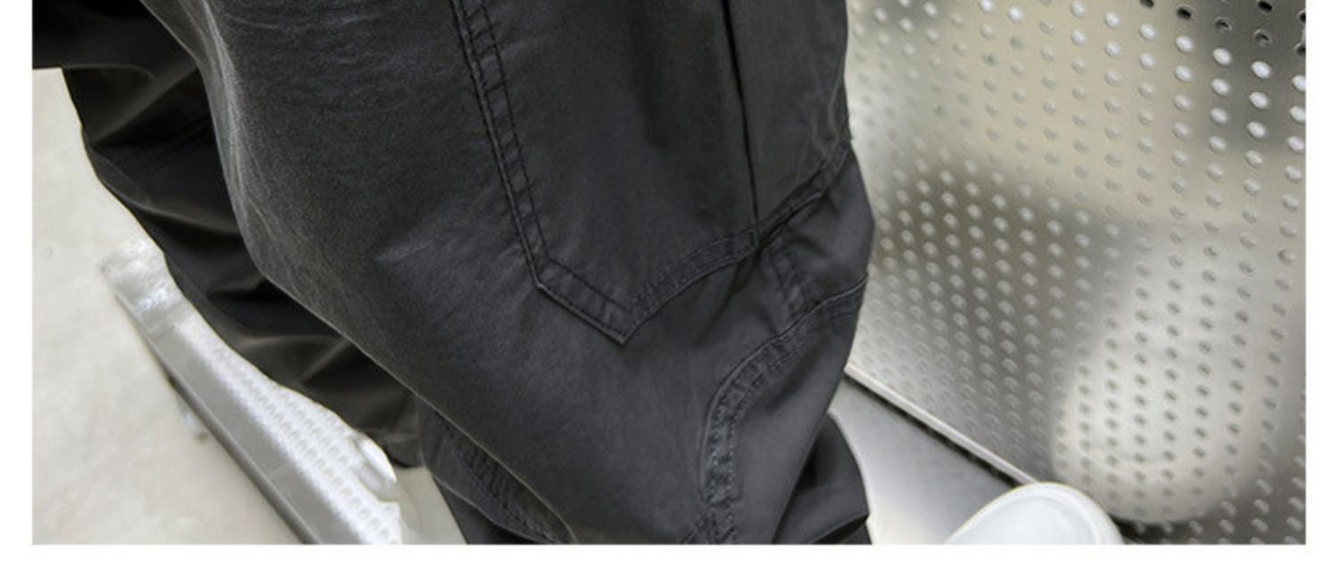 潮牌束腳工裝褲子男士夏季超薄彈力透氣九分褲帥氣韓版男式休閑褲