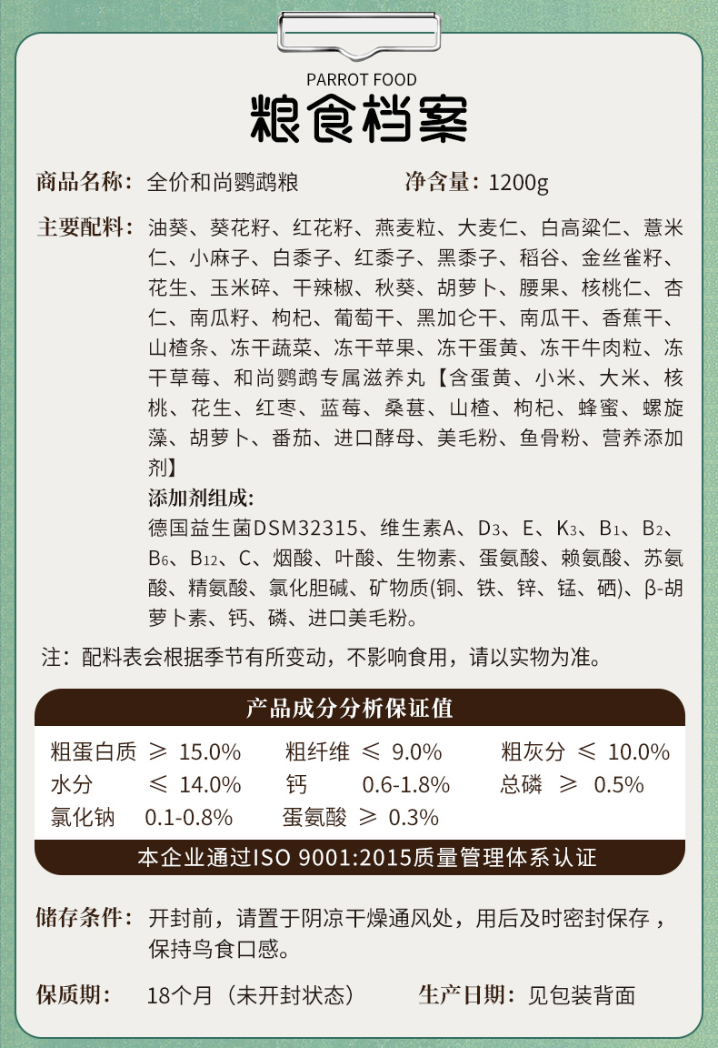 開元雞星人和尚專用糧藍和尚飼料折衷鳥糧滋養丸果蔬亞歷山大鳥食