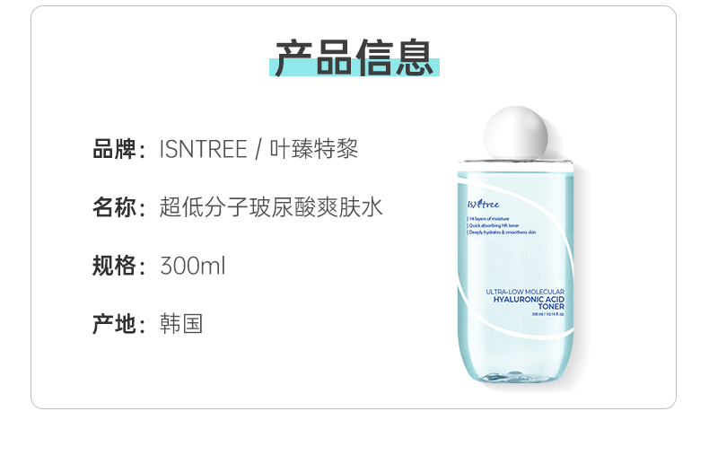 化解韓國官方isntree低分子玻尿酸爽膚水300ml保濕滋潤清爽不油膩
