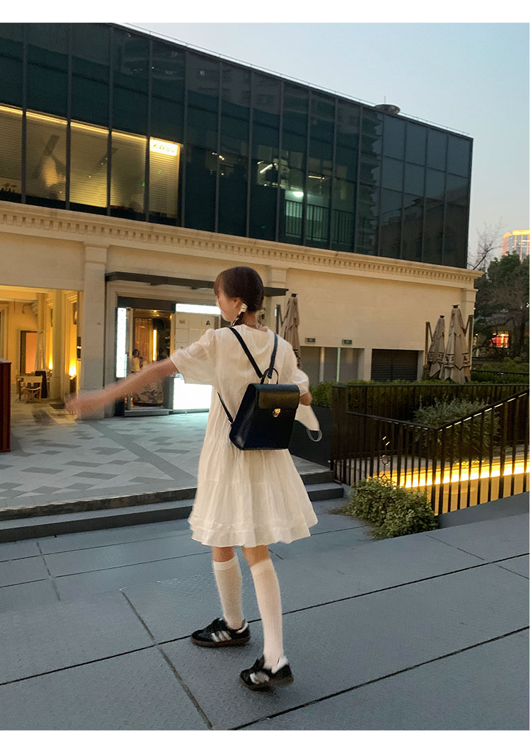三木社法式重工蕾絲系帶白色連衣裙短袖裙子甜美小白裙公主裙夏季