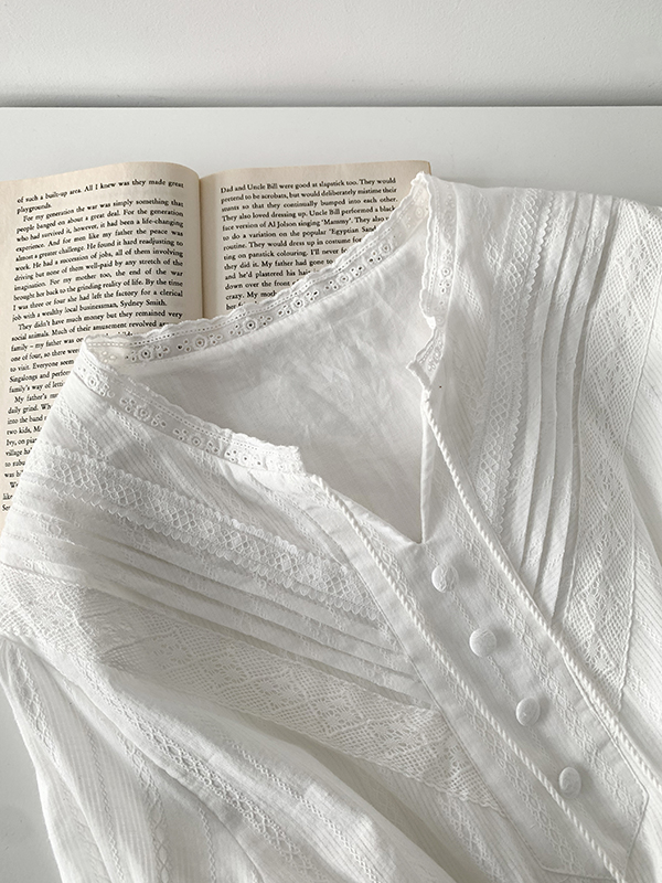 三木社 自制花邊娃娃領長袖連衣裙秋季中長款初戀裙寬松收腰裙子
