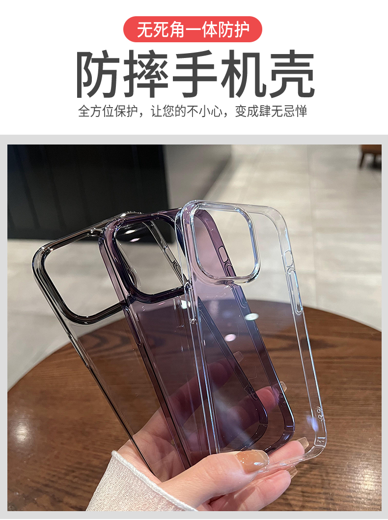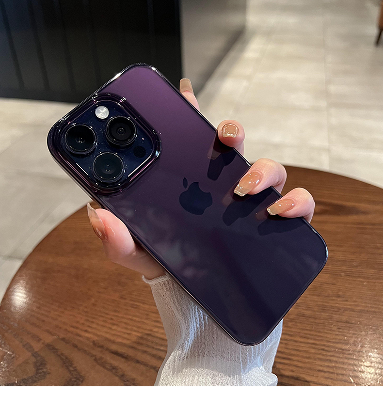【大孔鏡頭】透紫色超薄硬殼適用蘋果15/15pro新款iPhone14proMax手機殼13簡約高級12透明防摔保護套男女plus