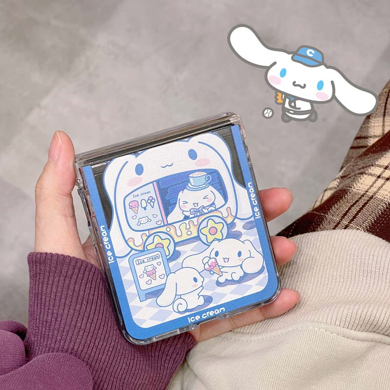 適用oppoFindN2flip手機殼N3flip上下折疊硬殼透明保護套甜品雪糕美樂蒂玉桂狗公仔繩ins風少女可愛卡通日系