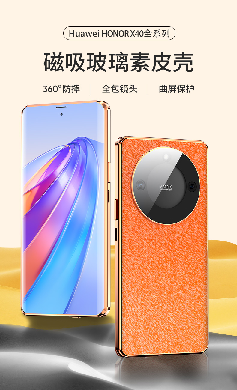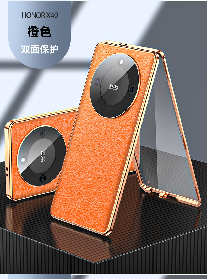 適用榮耀X4O手機殼x40gt華為honor外殼新款x40i素皮玻璃i40x磁吸x4OI雙面全包金屬40L自帶金屬鏡頭圈xgt華x4o