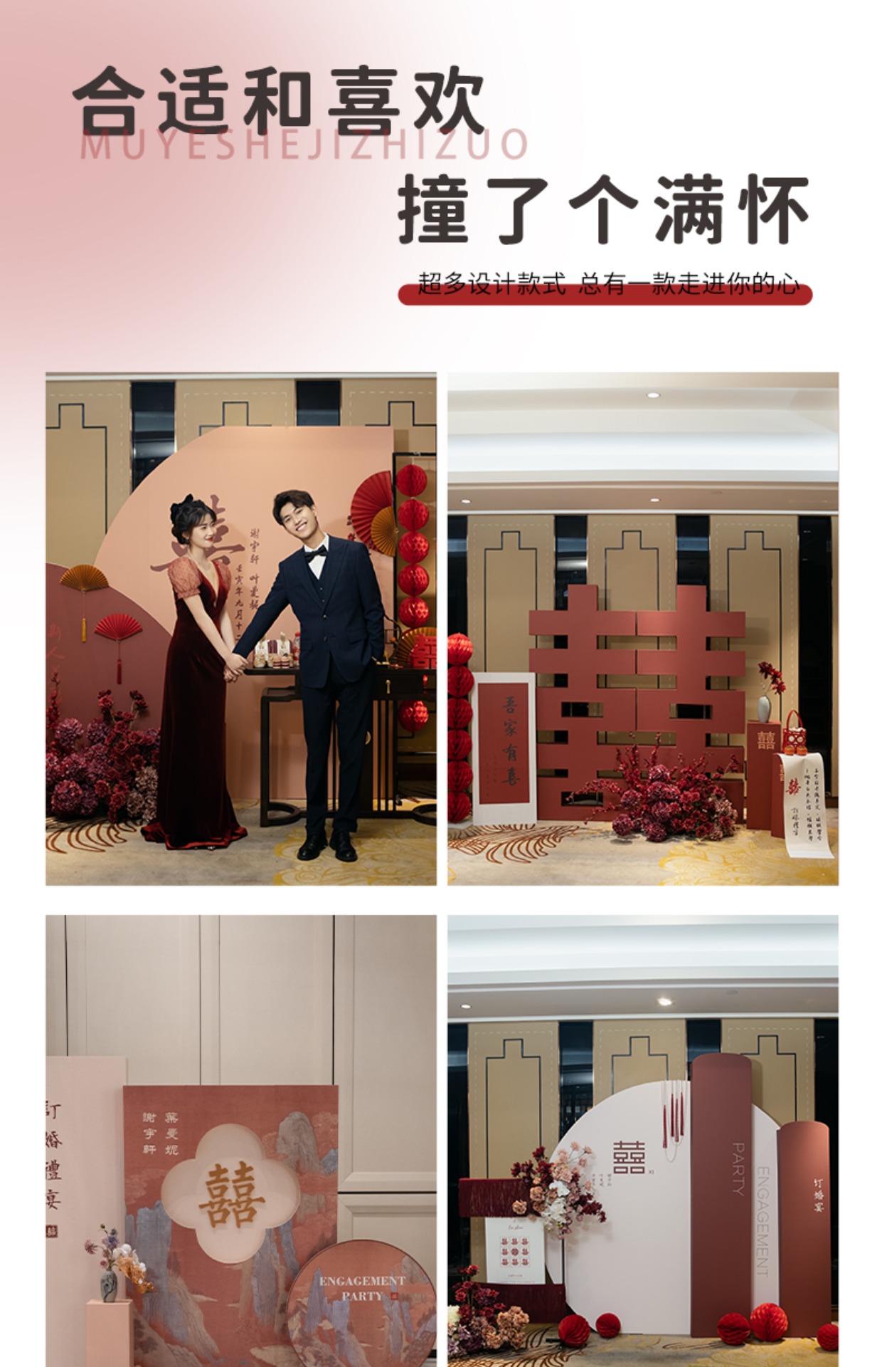 訂婚擺件宴布置全套結婚禮留影區背景墻布kt板中國風裝飾高級感臺