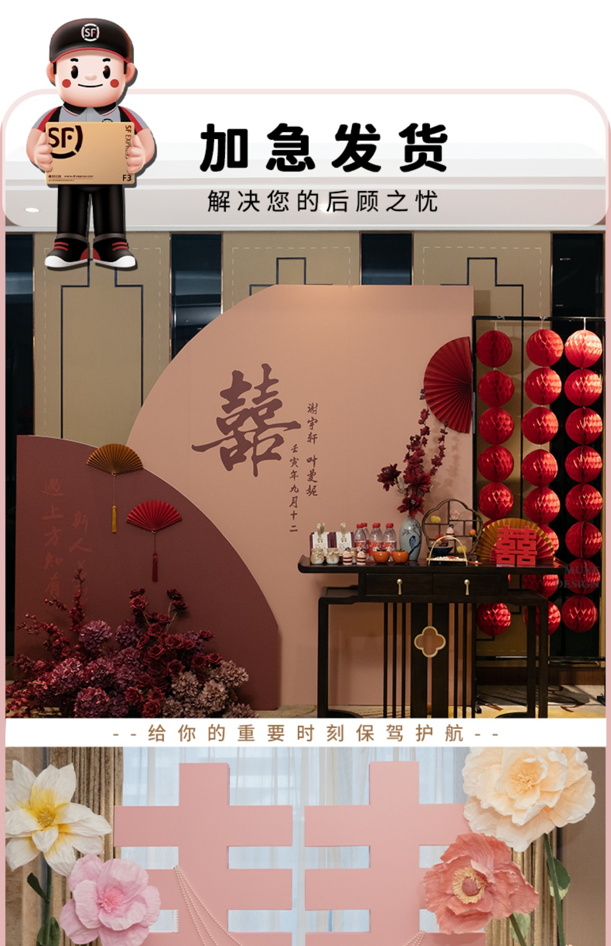 中式訂婚宴布置背景墻全套裝飾婚禮結婚場景酒店答謝回門kt板絹花