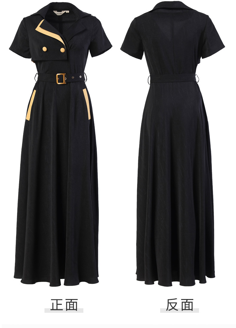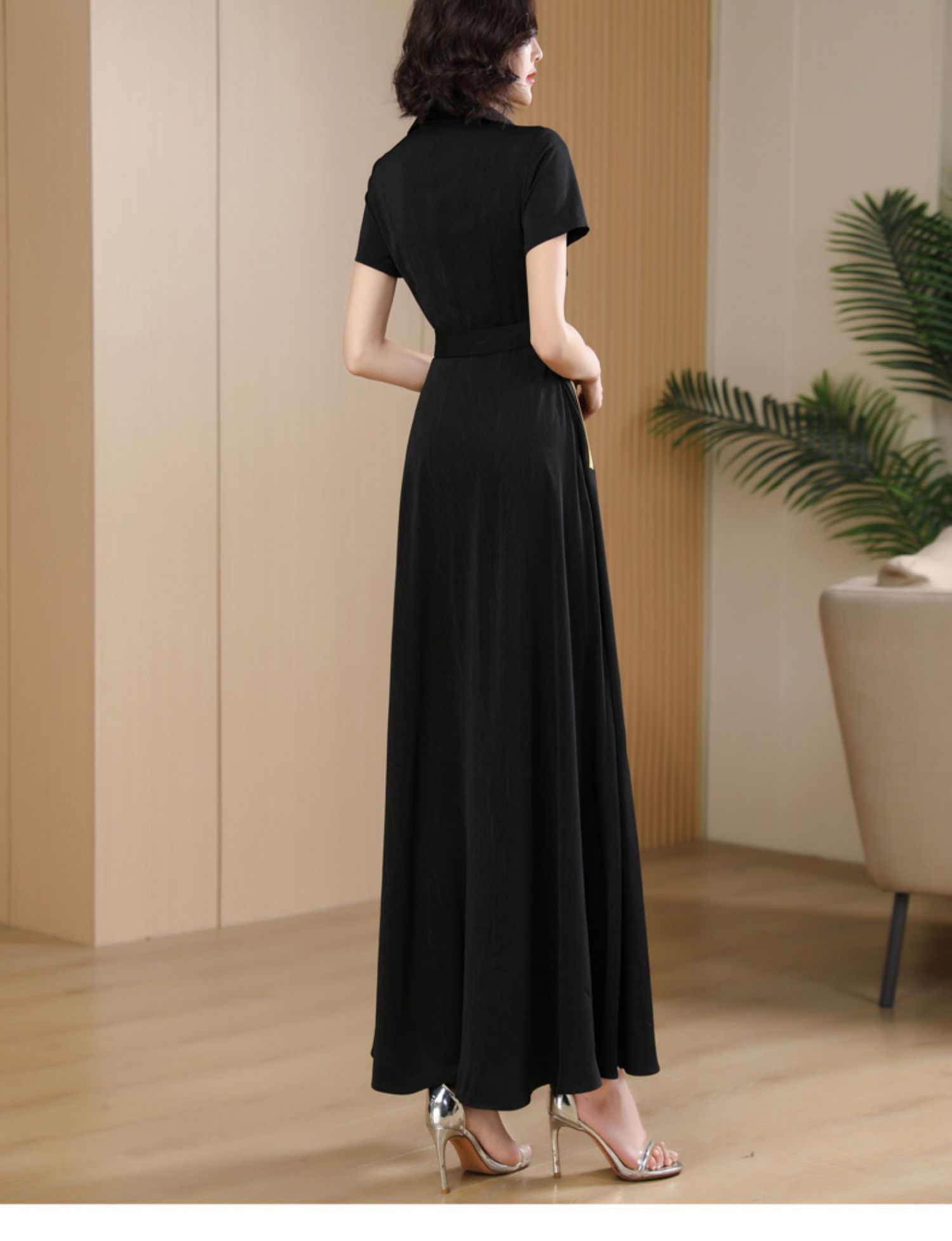 黑色高級感連衣裙2023女夏新款腰帶修身高端氣質超長裙到腳踝1671