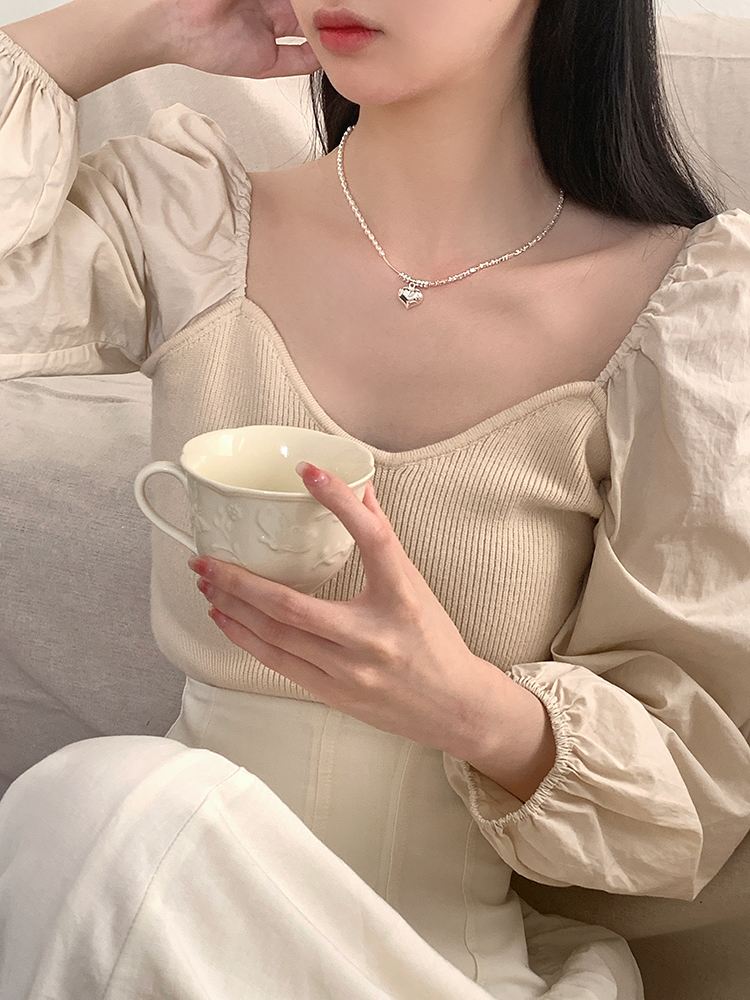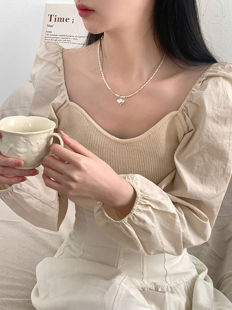 輕奢小眾設計感高級925純銀珍珠項鏈女夏愛心碎銀幾兩鎖骨鏈頸鏈