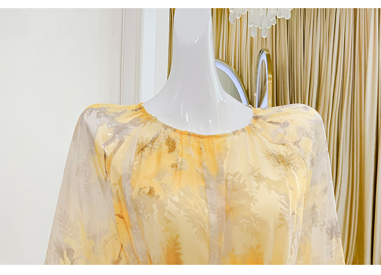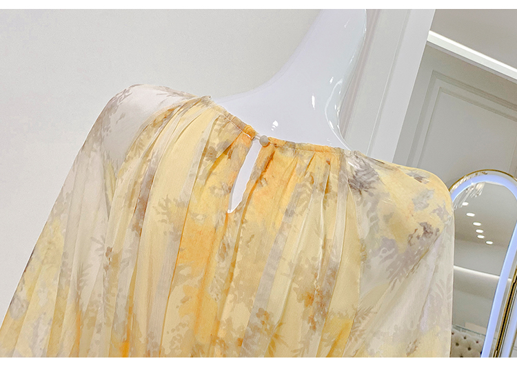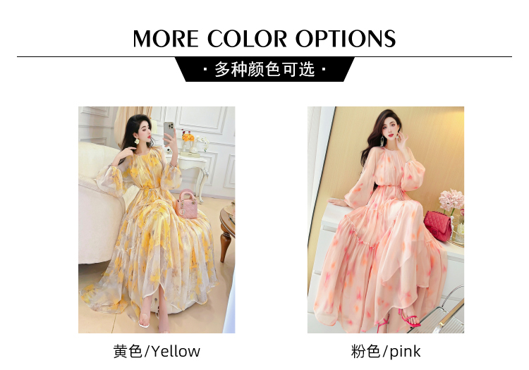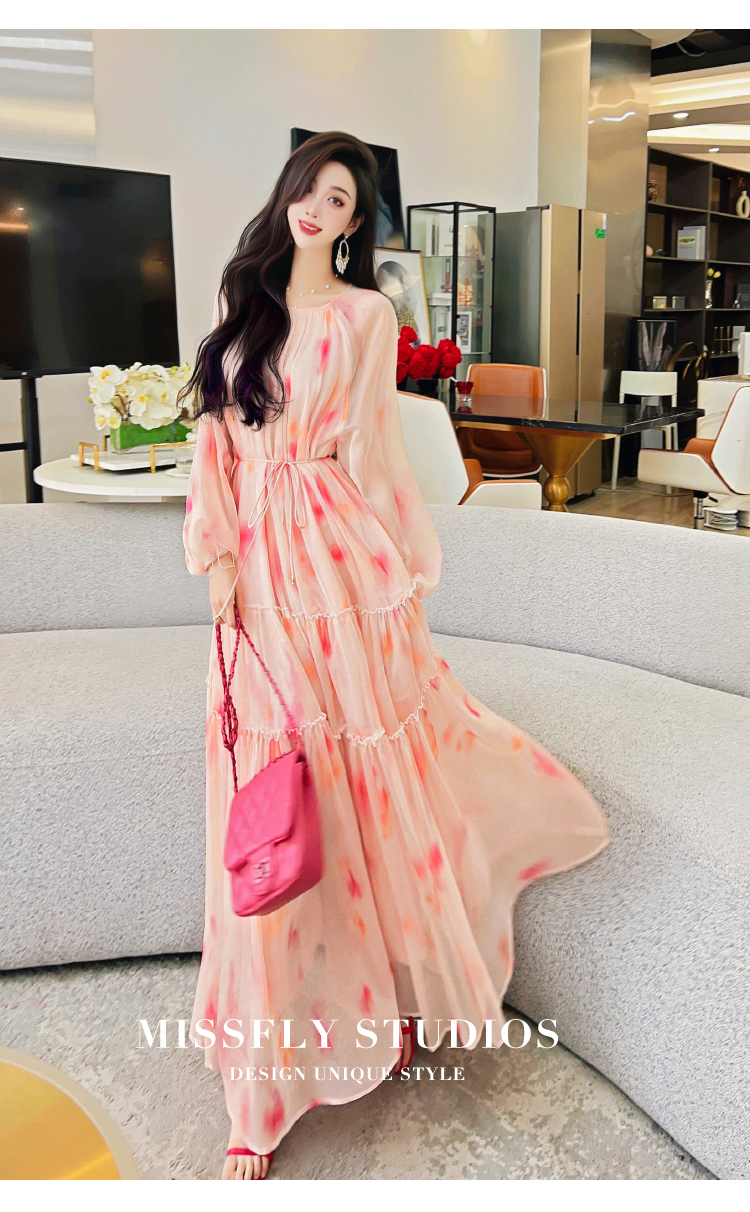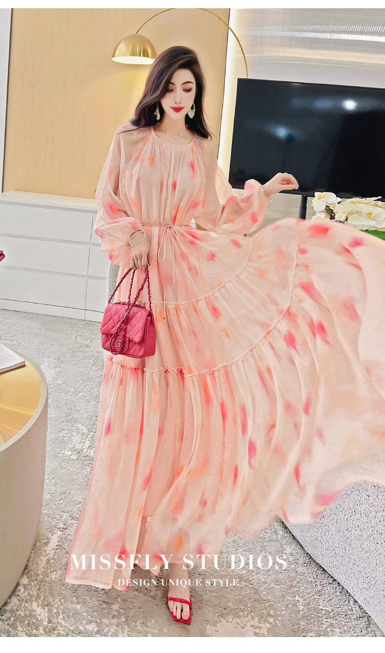 飛姐定制法式雪紡碎花連衣裙2023年春秋新款女溫柔風顯瘦度假長裙