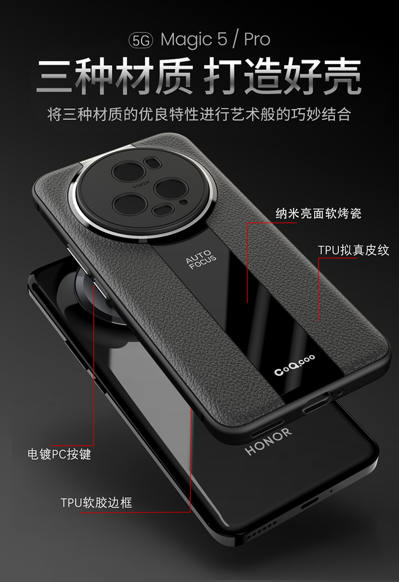 適用華為榮耀magic5至臻版手機殼mgaic5至尊保護套majic素皮軟邊pro全包防摔魔術m5男女migc創意Honor高檔mgi