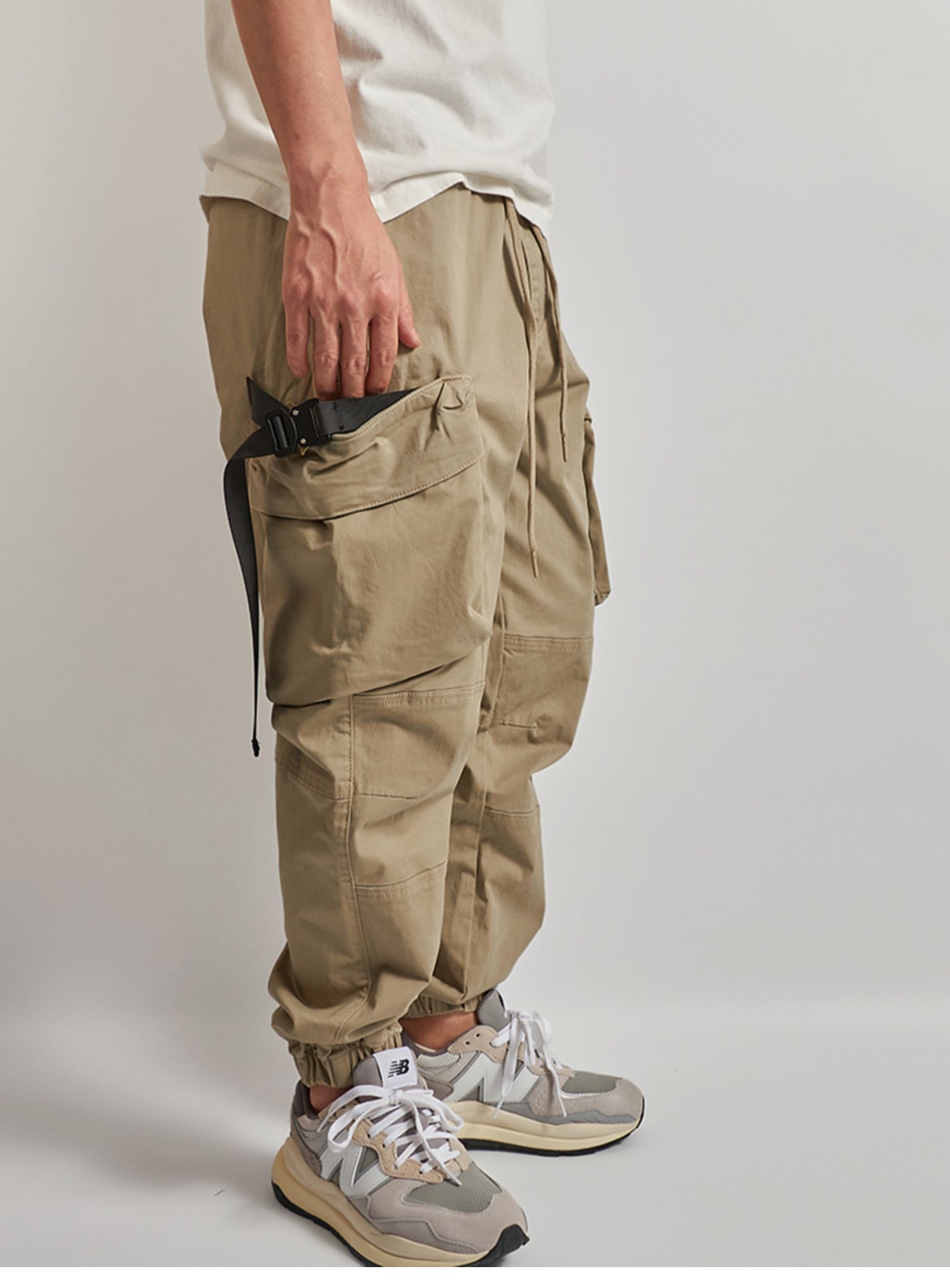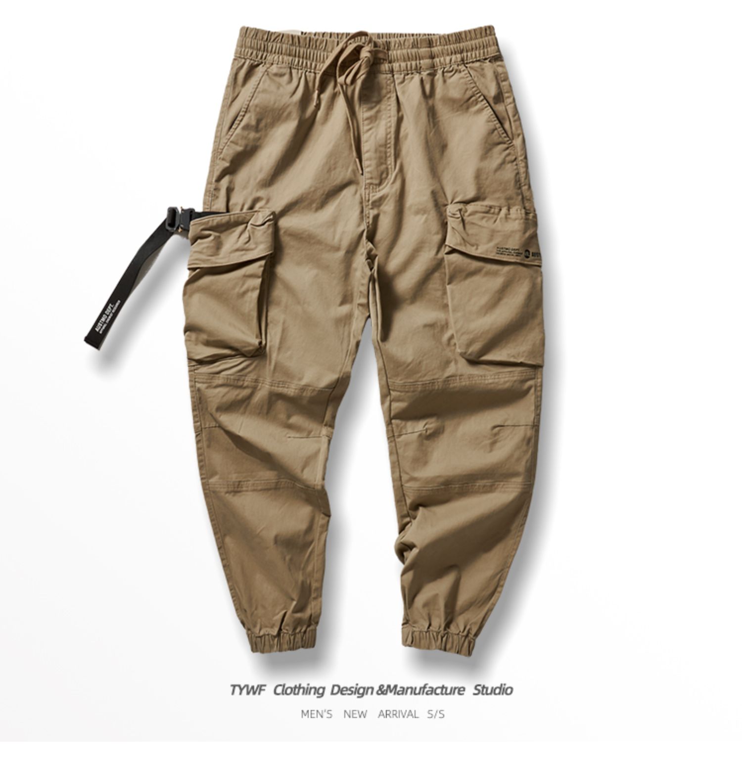 潮牌日系口袋工裝褲男2023春夏新款潮款復古軍事風寬松束腳休閑褲
