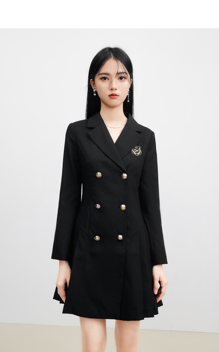白鹿語氣質西裝領雙排扣連衣裙秋款優雅收腰顯瘦通勤長袖西裝裙