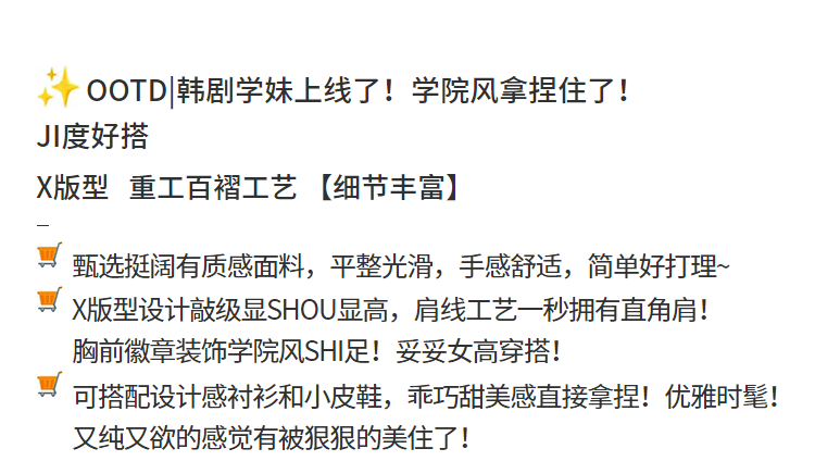 27¥ CZ0001 o6EYWZKNOTQ¥ https://m.tb.cn/h.5TjcRkF 秋水伊人氣質連衣裙2023秋季新款女裝雙排扣高級感黑色修身西裝裙 --------------------- 秋水伊人氣質連衣裙2023秋季新款女裝雙排扣高級感黑色修身西裝裙 --------------------- 【原售價】518元 【優惠券】20元 【券后價】498元。