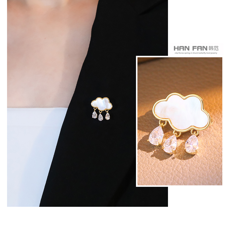 水滴鋯石云朵胸針春夏領口防走光別針女高檔胸花氣質西裝外套配飾