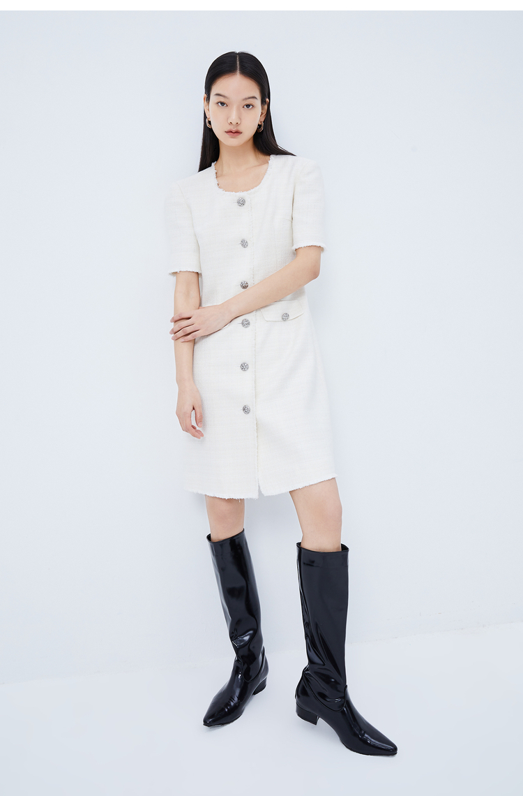 【商場同款】LILY2023秋新款女裝復古小香風別致毛邊修身短連衣裙