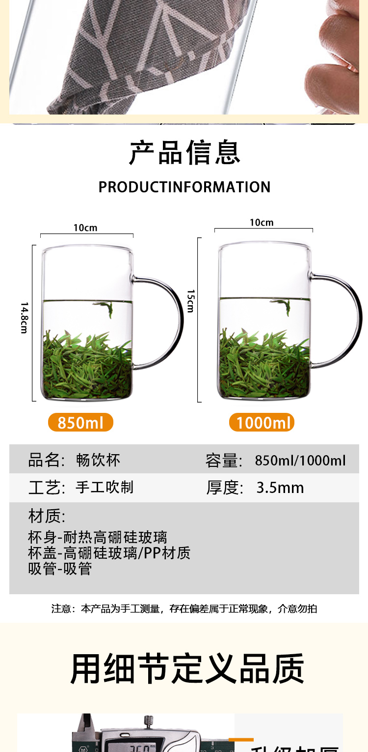 1000毫升大容量玻璃帶蓋帶喝水杯子
