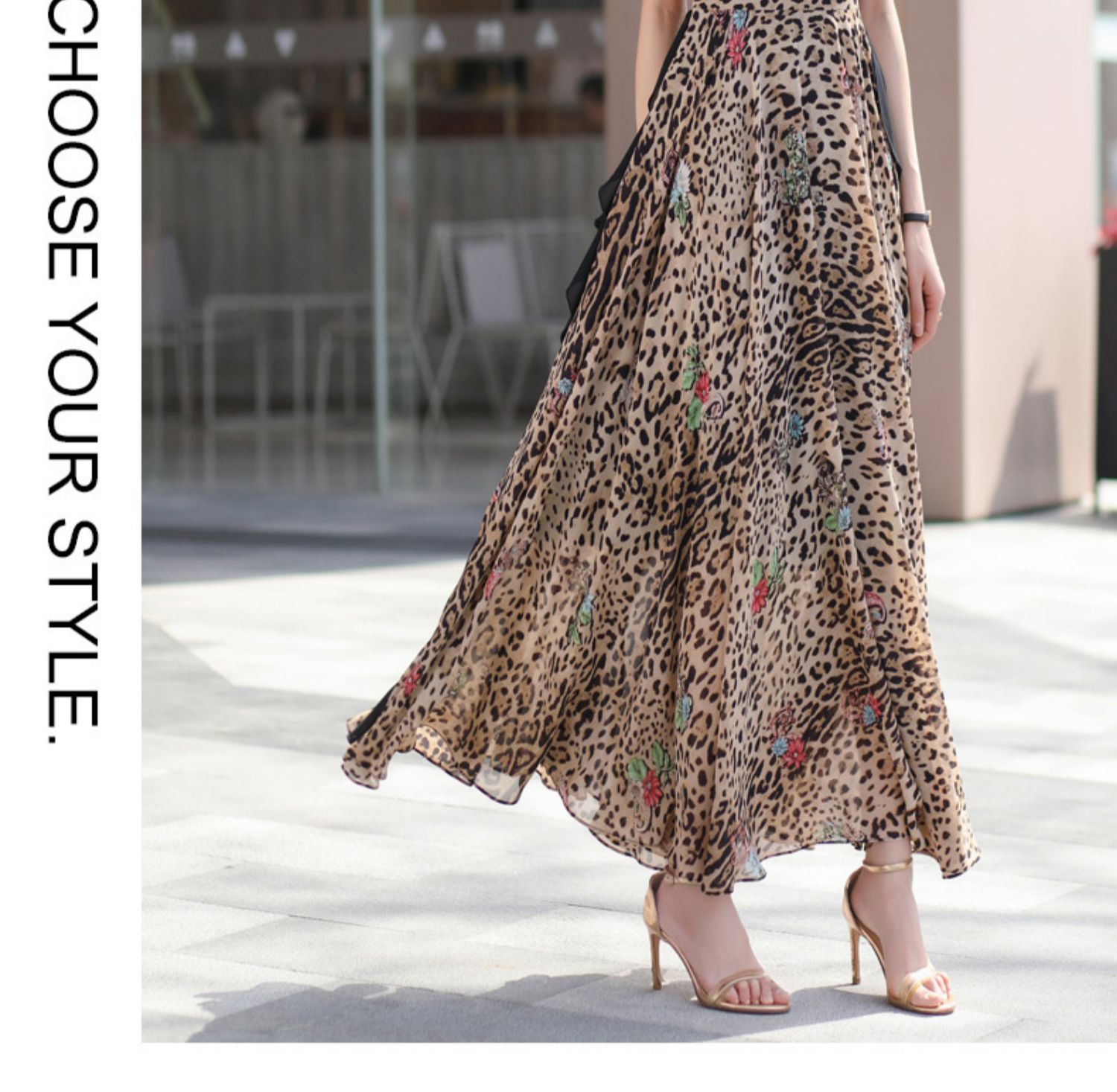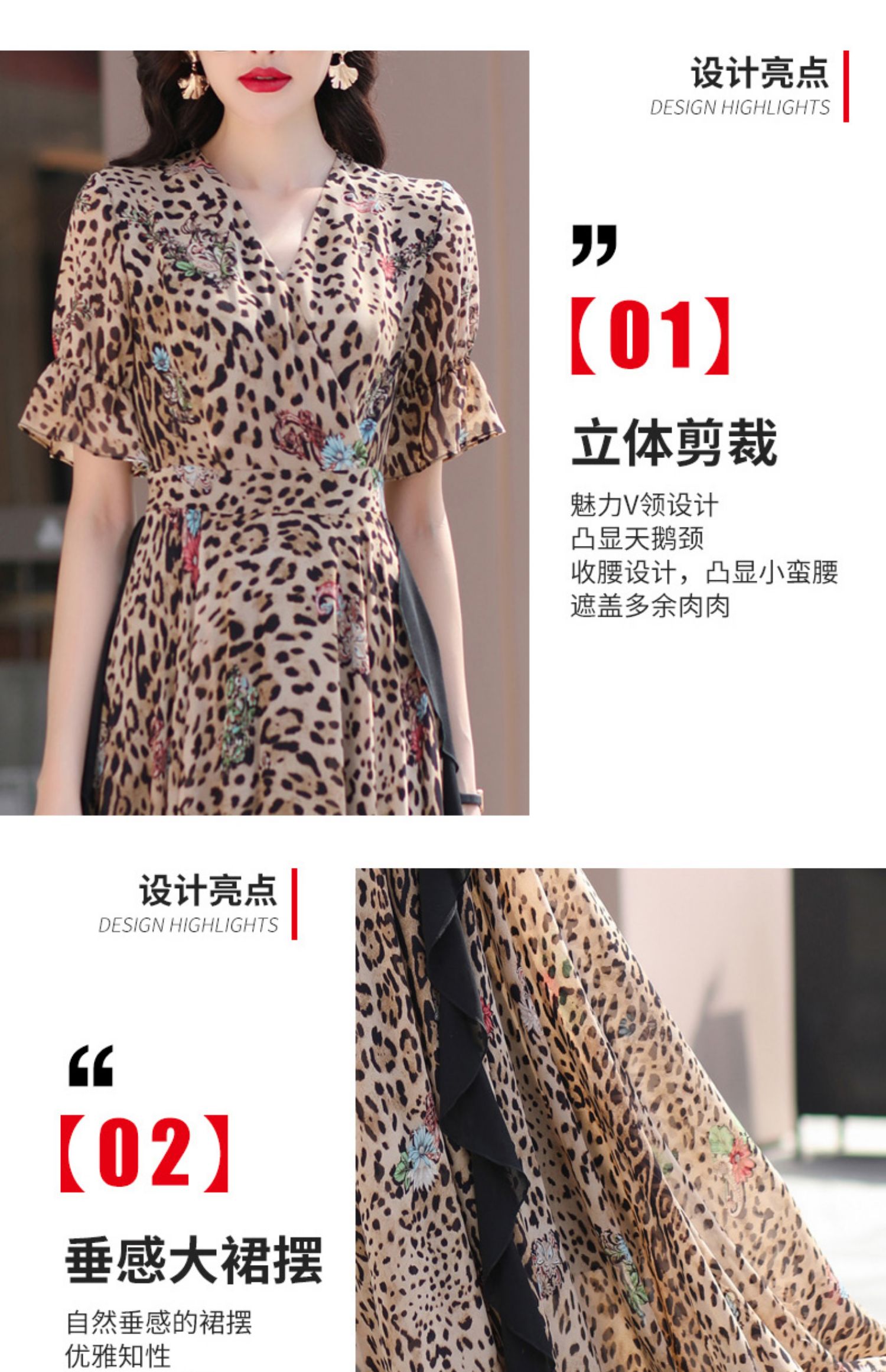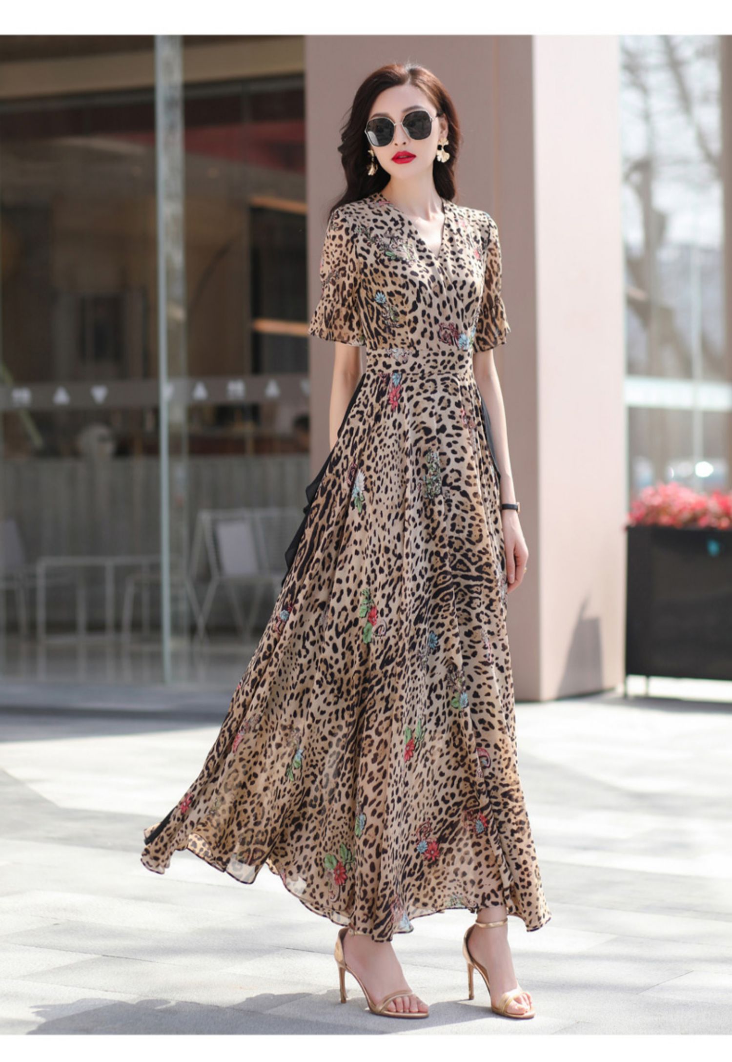 豹紋連衣裙修身顯瘦高級感2023夏季新款氣質大擺超長裙到腳踝1654