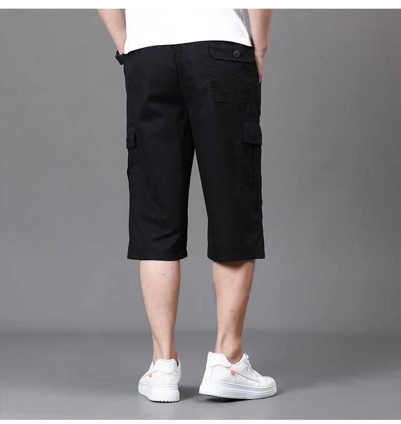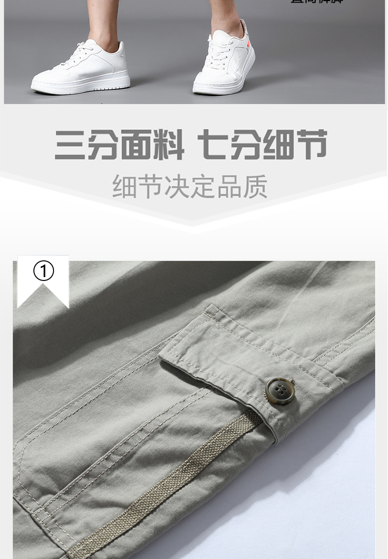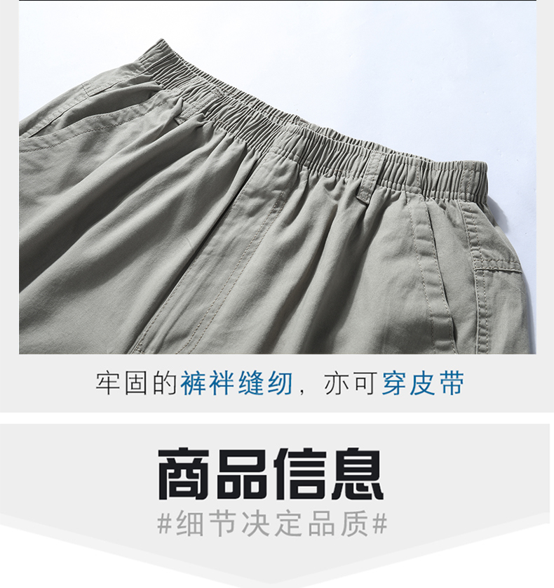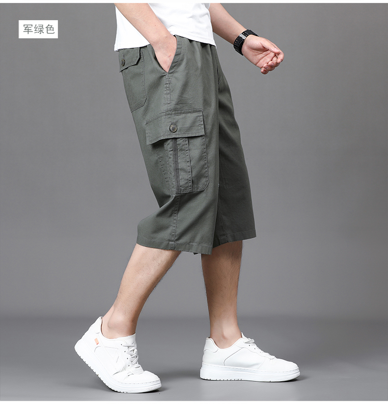 夏季男士七分褲中老年薄款多口袋工裝沙灘褲寬松休閑短褲純棉中褲