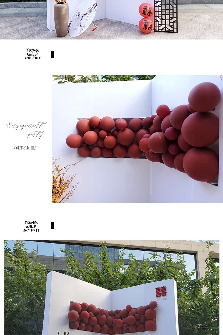 小紅書爆款訂婚宴婚布置裝飾場景背景墻黑粉kt板定制物品氣球套裝