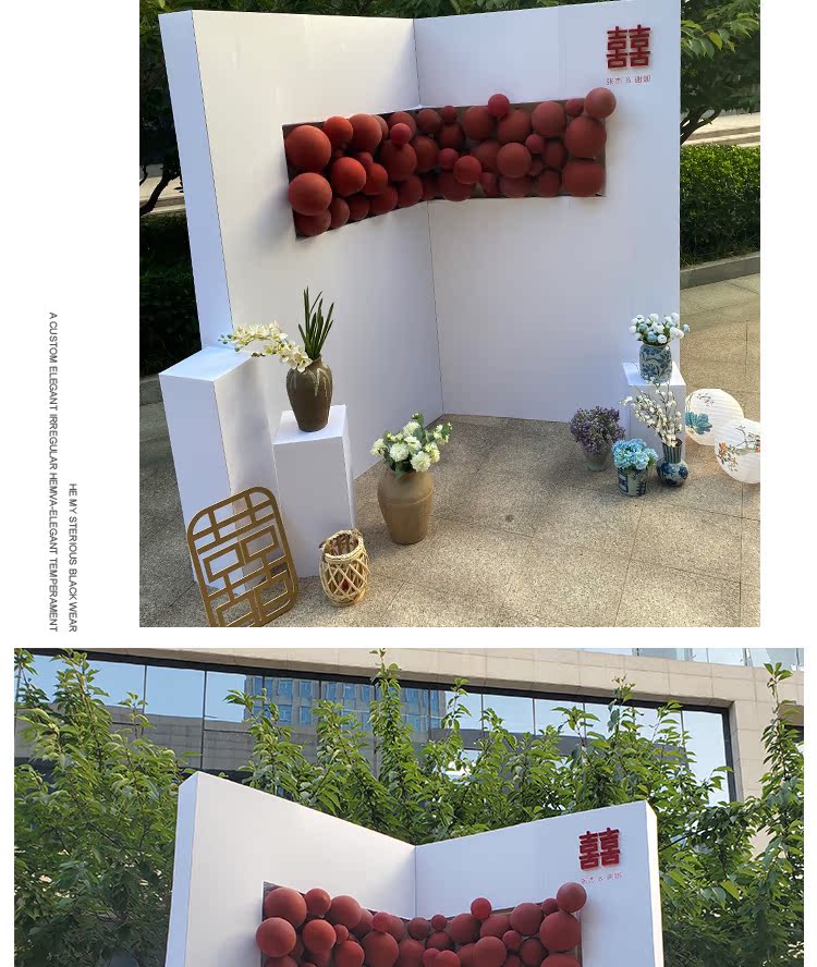 網紅新中式訂婚布置裝飾全套擺件用品簡約立體喜字背景墻定制kt板