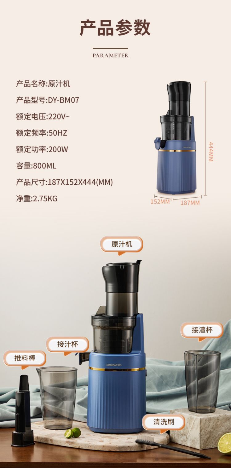 大宇榨汁機原汁機渣汁分離家用炸果汁榨水果大口徑汁渣慢磨全自動