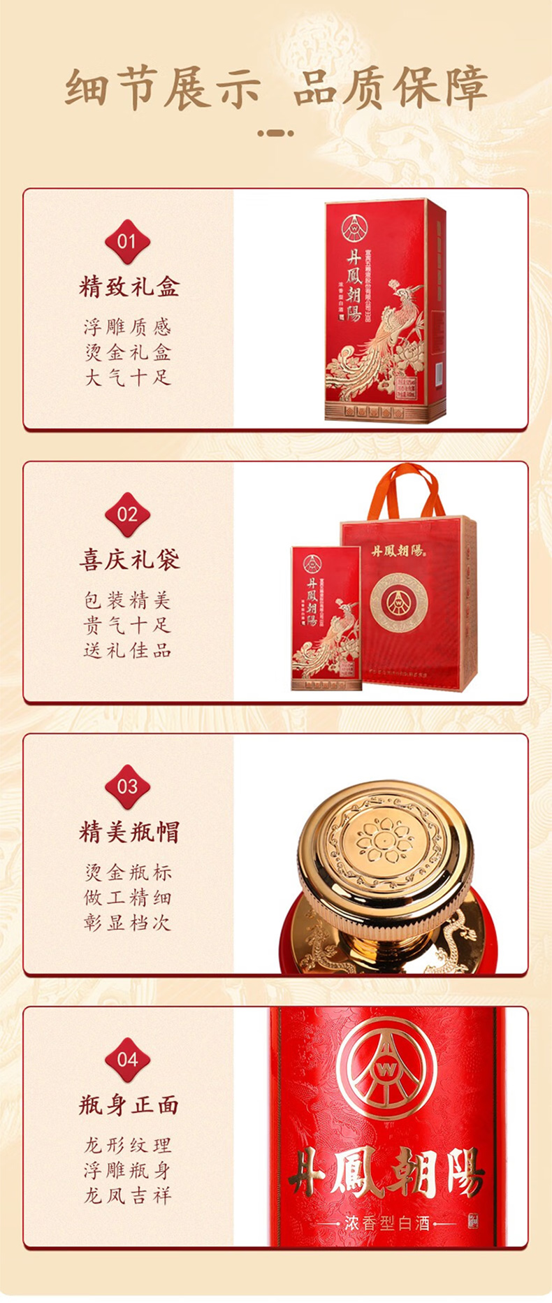 五糧液丹鳳朝陽鳳來儀紅52度500ml*6盒濃香型白酒禮盒送禮整箱