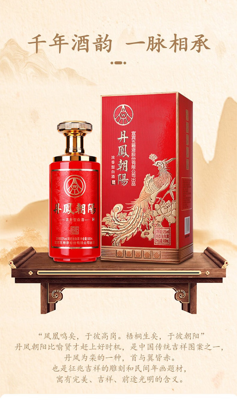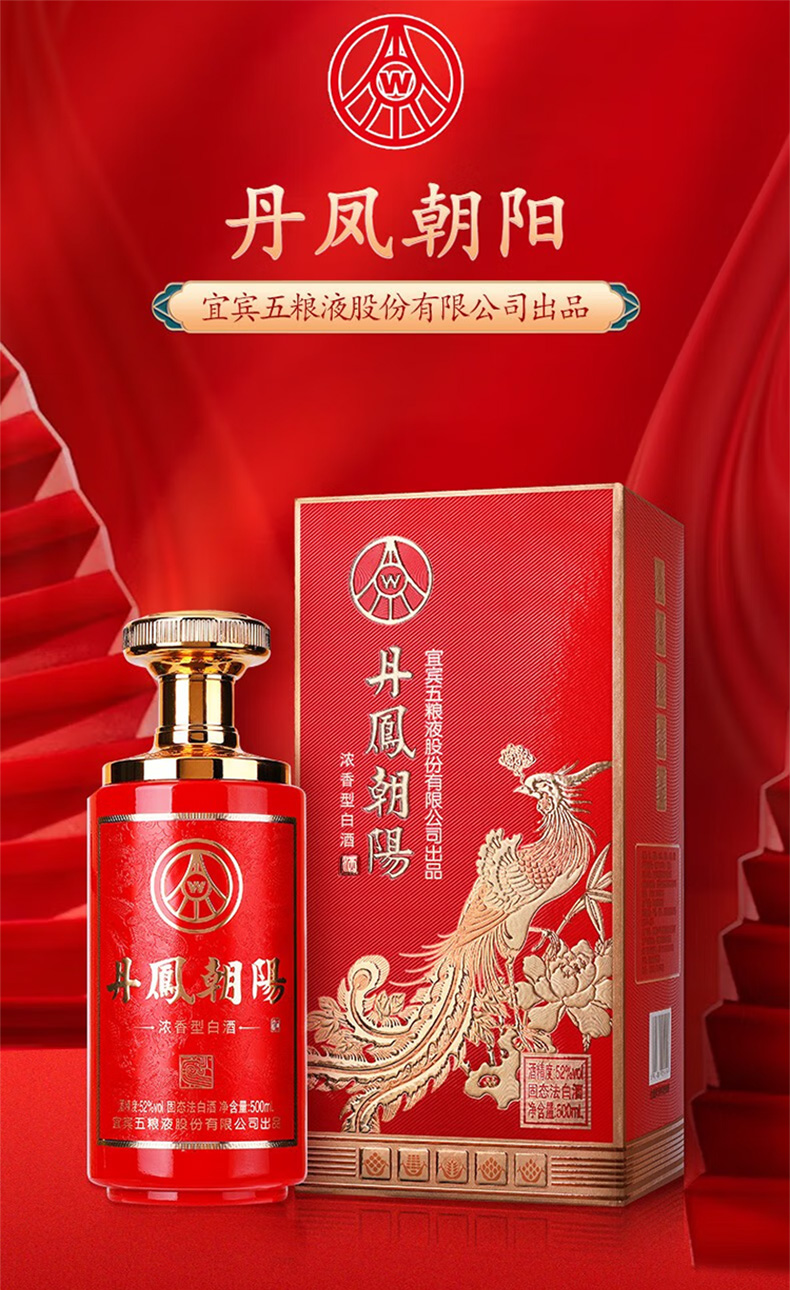 五糧液股份丹鳳朝陽鳳濃香型白酒 52度 500ml*2瓶禮盒裝 婚宴用酒