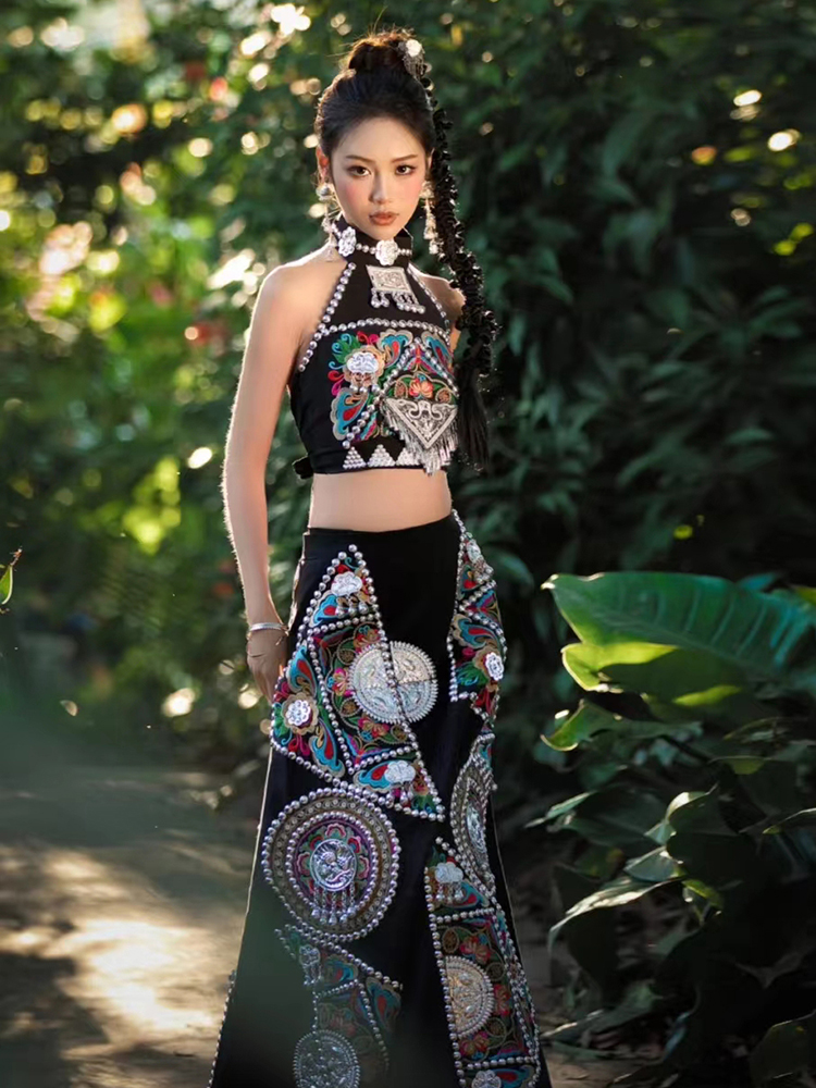 哈尼族新款服飾女版納旅拍攝影優質手工高定傣族服裝刺繡抹胸長裙