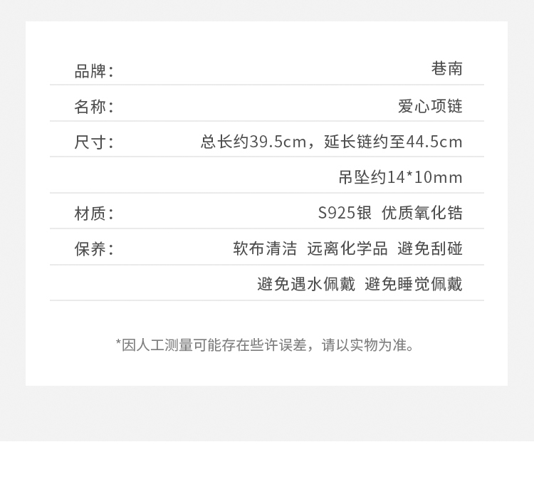【巷南】925純銀愛心鎖骨鏈輕奢女春小眾設計項鏈2023年新款爆款