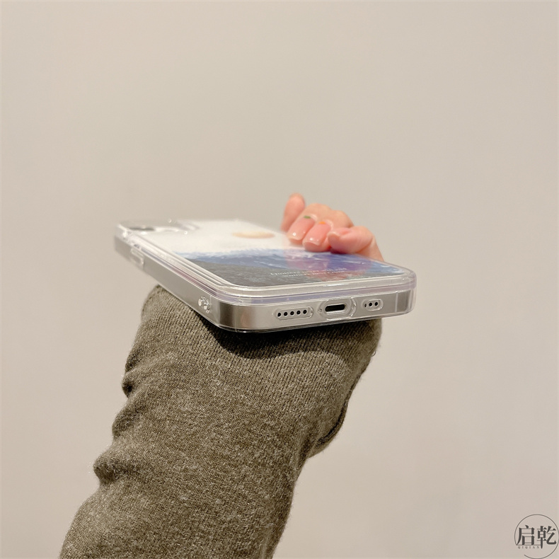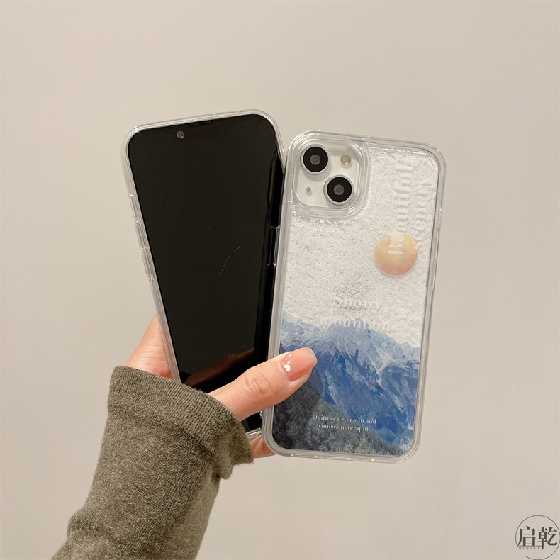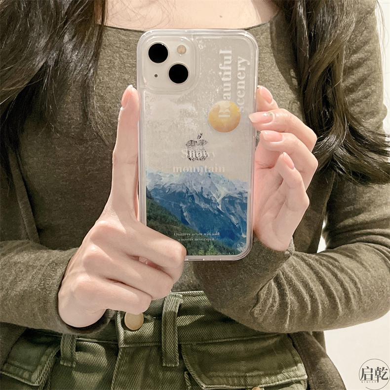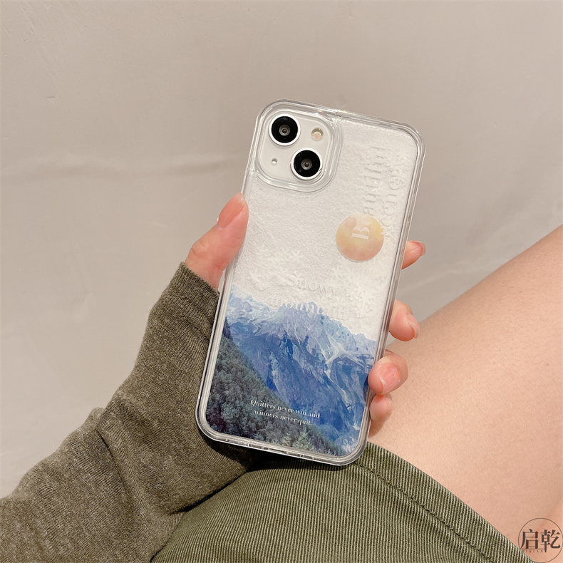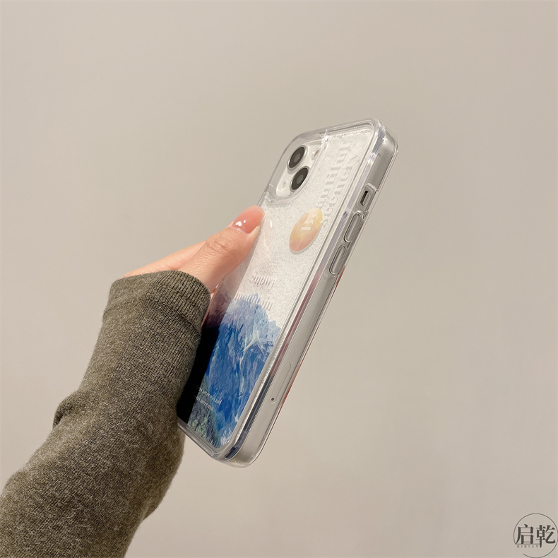 流沙殼雪山插畫iphone14手機殼適用蘋果13promax高級感12/11藝術冷淡風個性創意氣質女神男新款液體流動啟乾