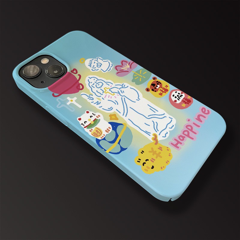 ins祈福天使菲林殼適用iPhone14pro蘋果手機殼15promax小眾藝術13pro按鍵全包14硬殼創意13插畫趣味15