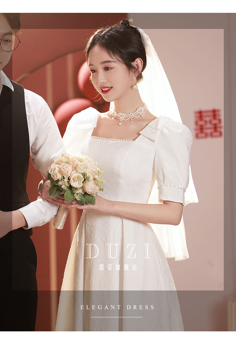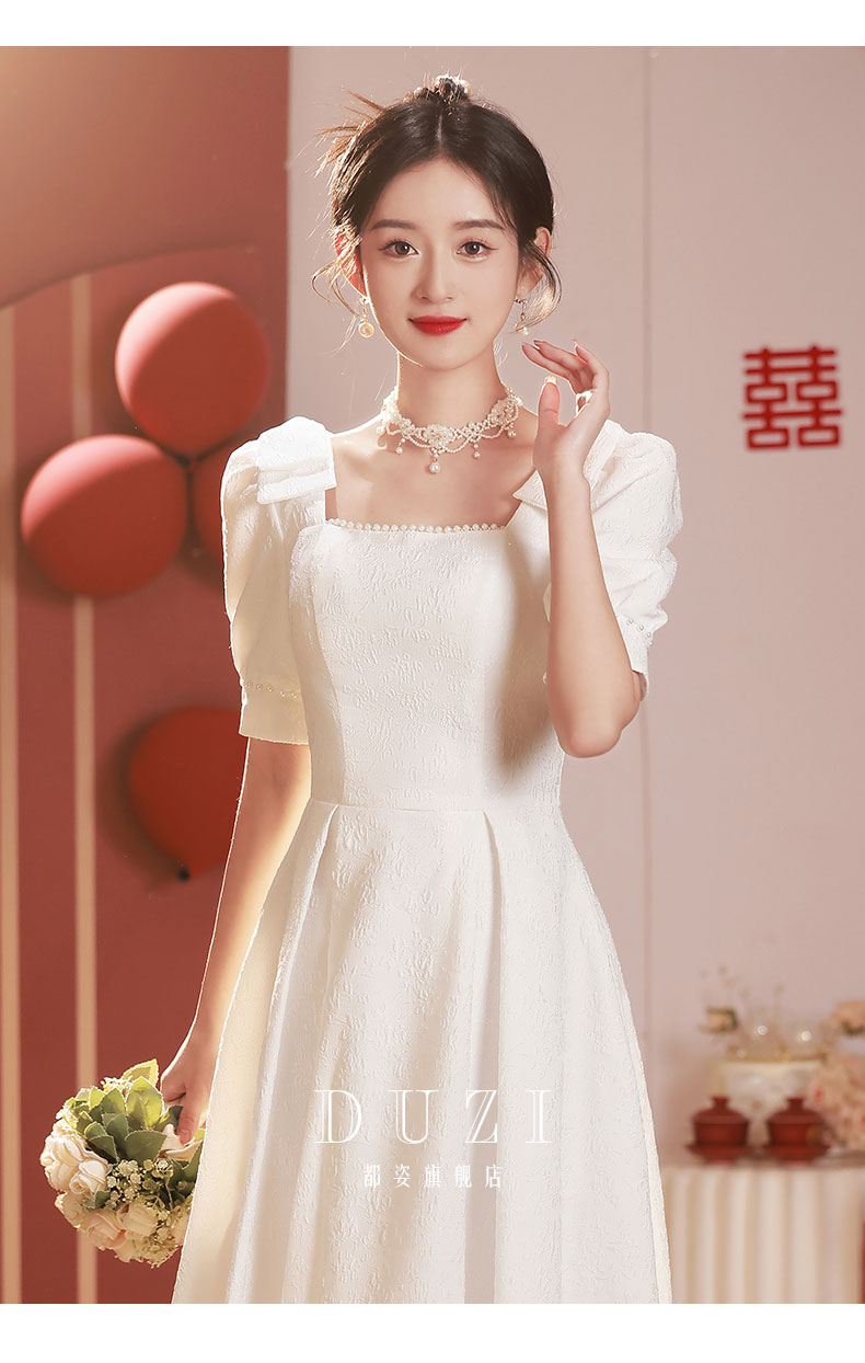 白色領證登記小白裙平時可穿法式輕奢小個子露背訂婚敬酒服高級感