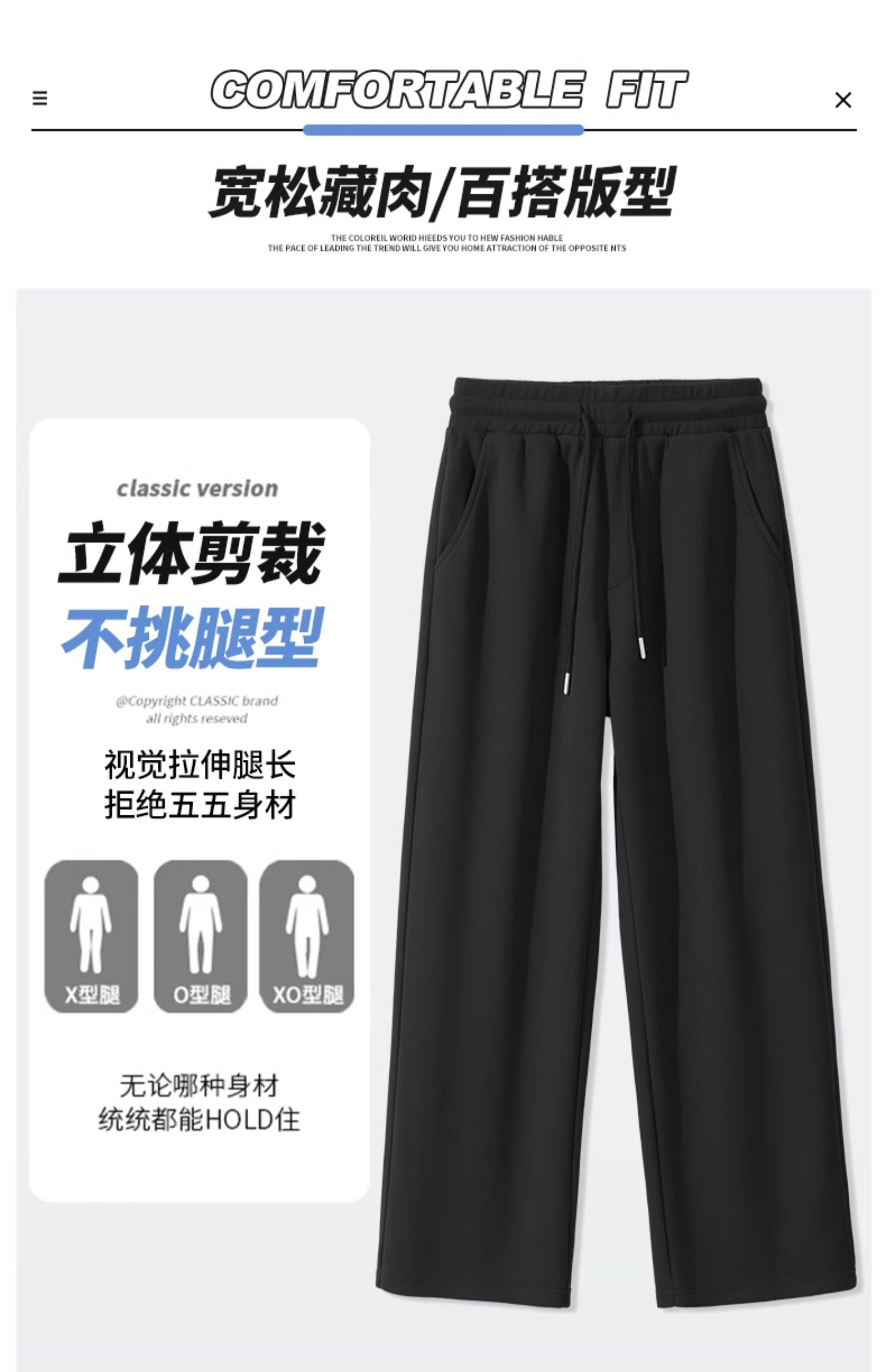 森馬集團GLM闊腿休閑褲男士秋季寬松直筒褲子男款卡其色男生衛褲
