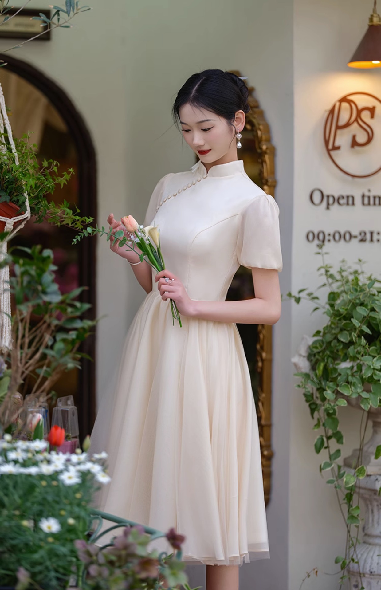 領證輕婚紗2023新款方領連衣裙高級感日常訂婚登記小禮服夏季白色