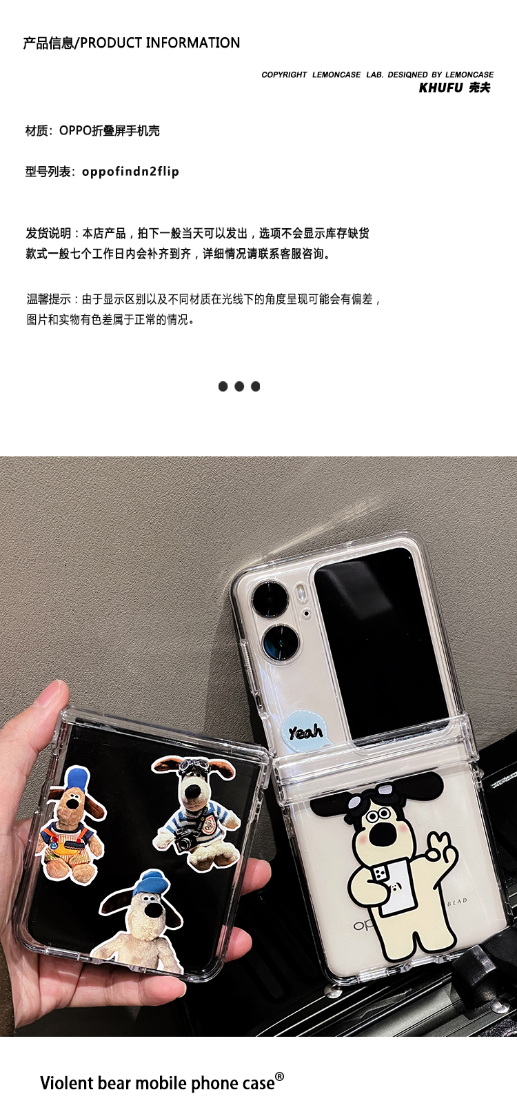適用oppofindn2Flip手機殼卡通掌門狗新款ins風掛繩小眾折疊屏findn2保護套趣味手提高級感手提創意防摔透明