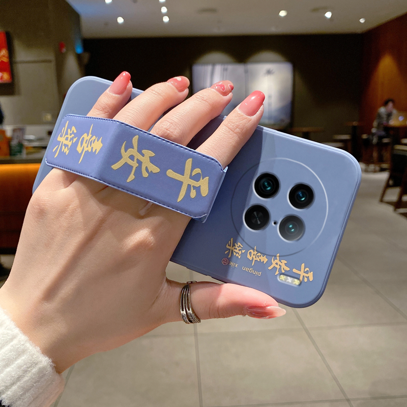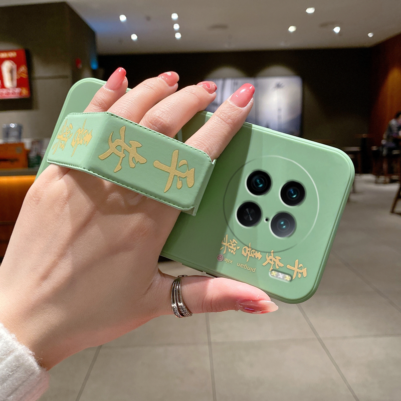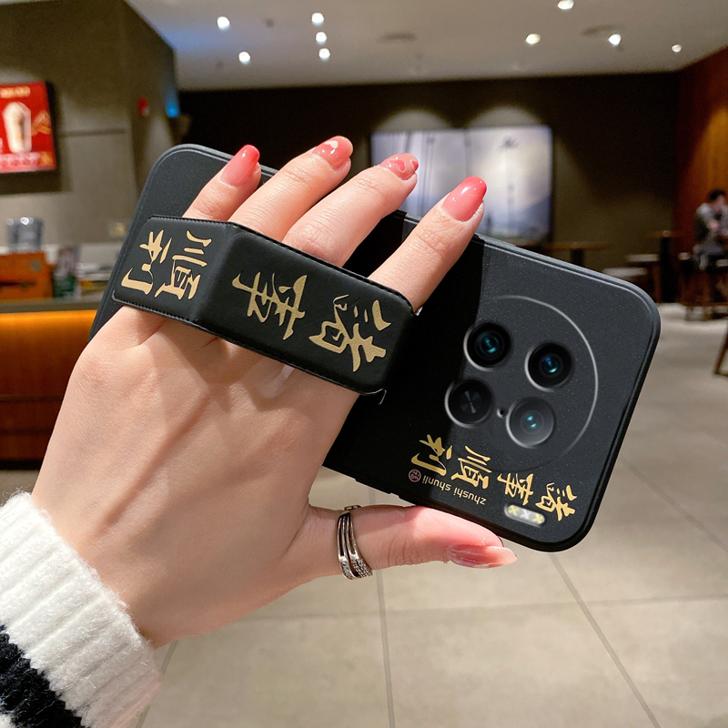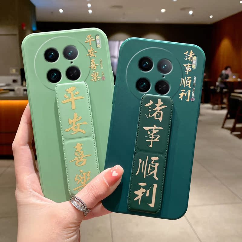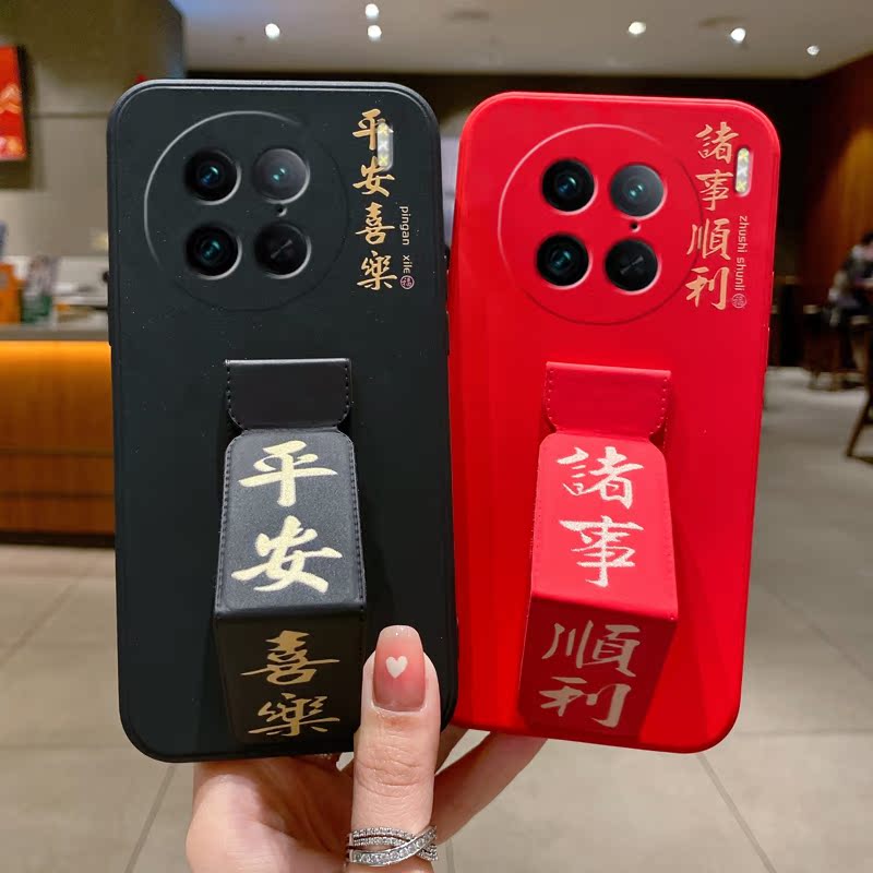 vivoX90手機殼文字X90Pro+車載磁吸支架X80/X70桌面橫豎屏放X60/X50/X27折疊腕帶軟殼中國風諸事順利平安喜樂