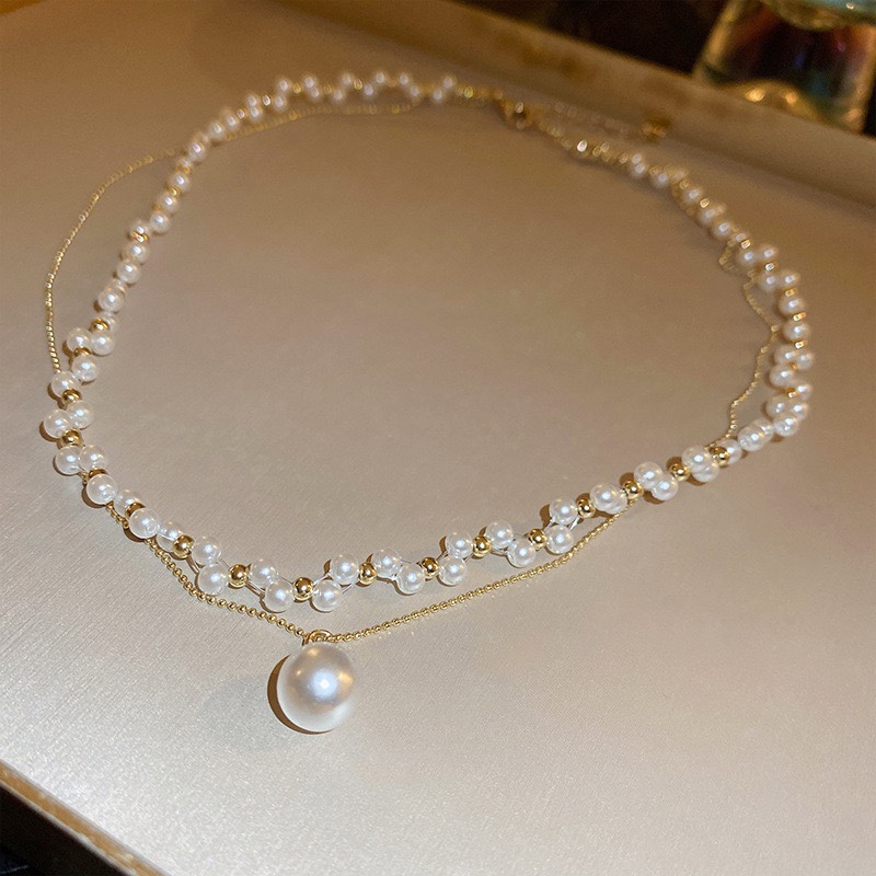 原創設計真金電鍍滿天星珍珠項鏈女雙層簡約鎖骨鏈百搭優雅潮頸鏈