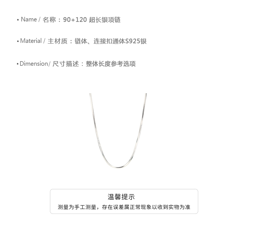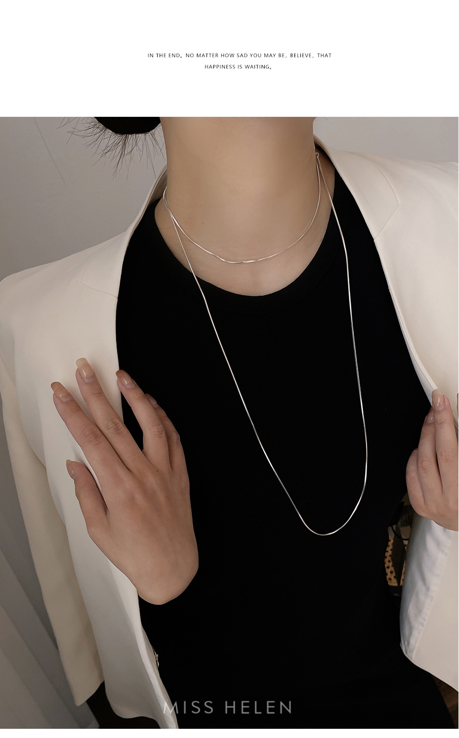 90cm120cm超長款銀項鏈設計感通體S925蛇骨鏈輕奢閃亮通勤盒子鏈