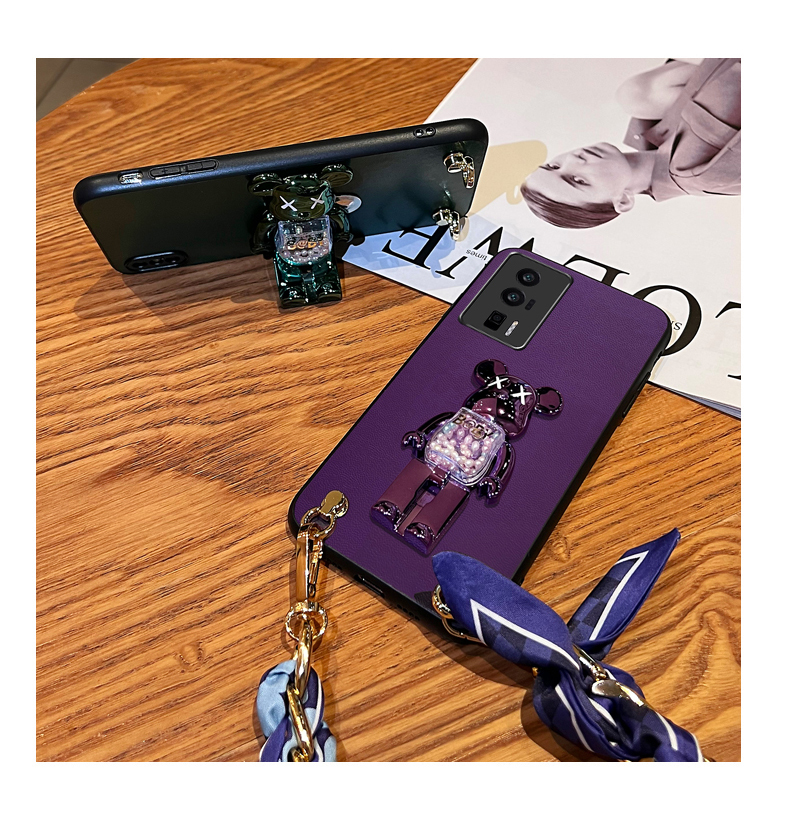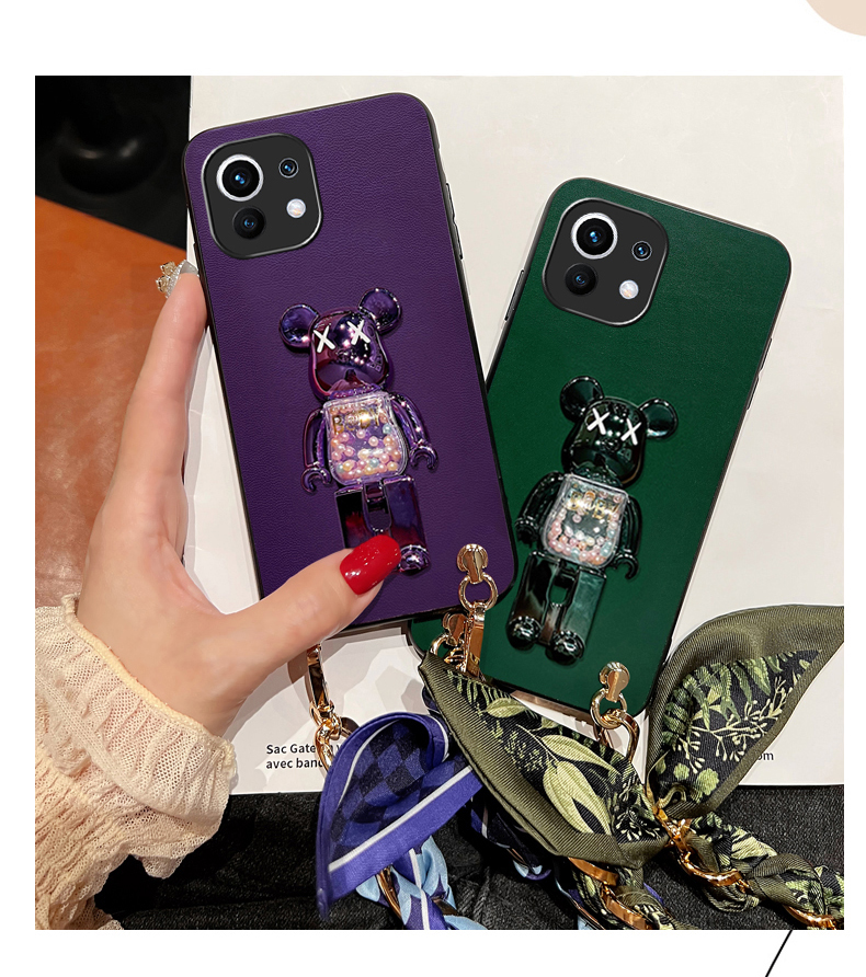 小米13手機殼12spro潮牌電鍍可愛熊支架11PRO保護皮套外殼11ultra手提絲巾掛繩女紅米K50支撐硅膠軟K60適用于
