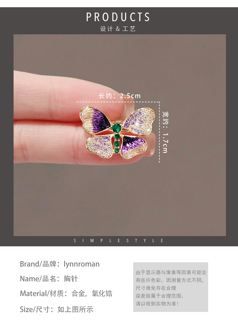 LYNNROMAN奢華紫水晶蝴蝶胸針高檔女高級感西裝別針氣質時尚胸花