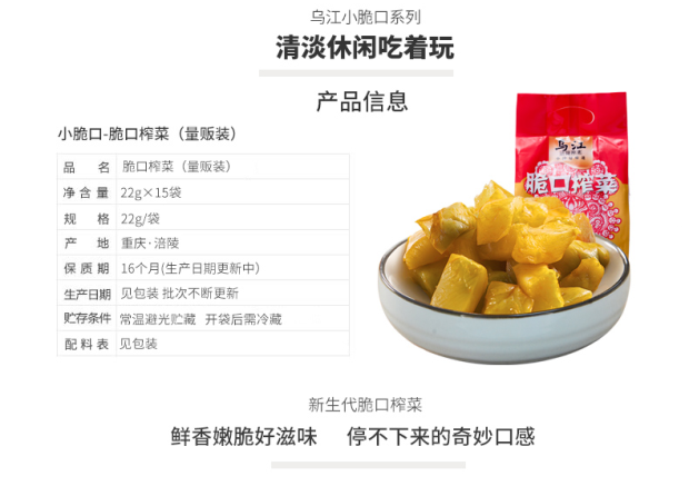 袋裝清淡老牌烏江榨菜輕鹽版榨菜小包裝15克老式榨菜正宗休閑香辣